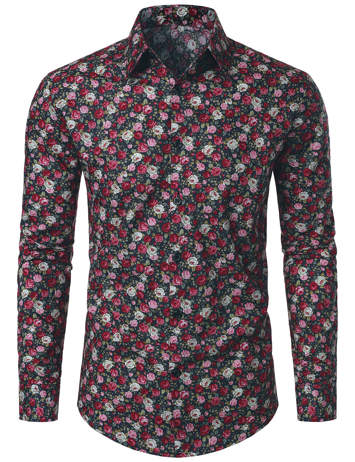 Men's 70s Breathable Cotton Long Sleeve Floral Print Shirt