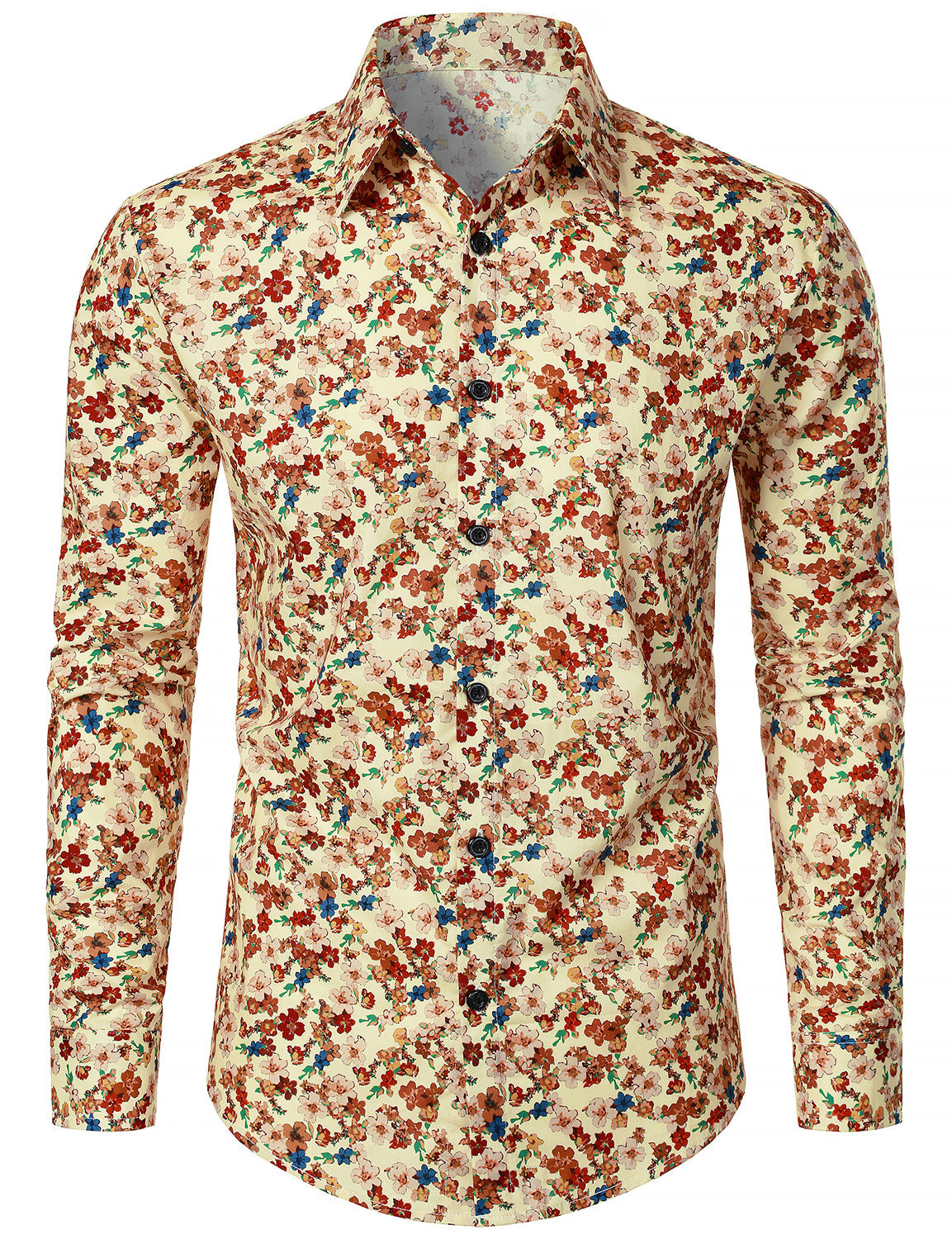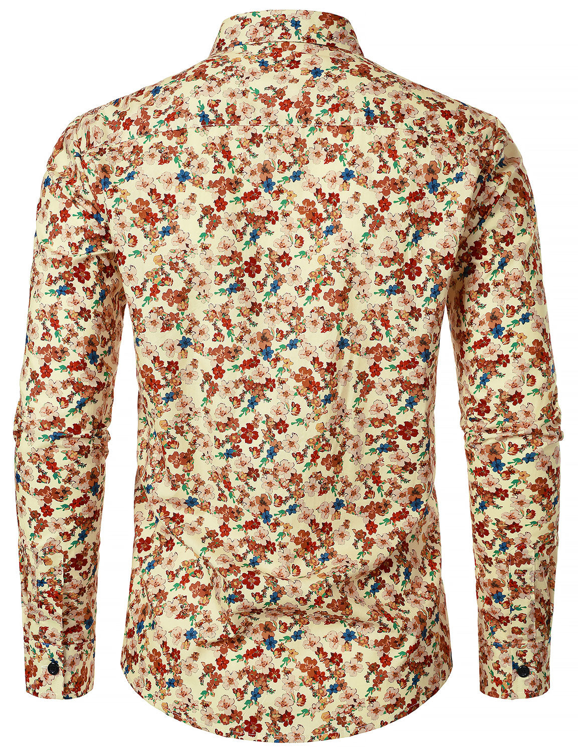 Men's 70s Floral Print Breathable Cotton Long Sleeve Shirt