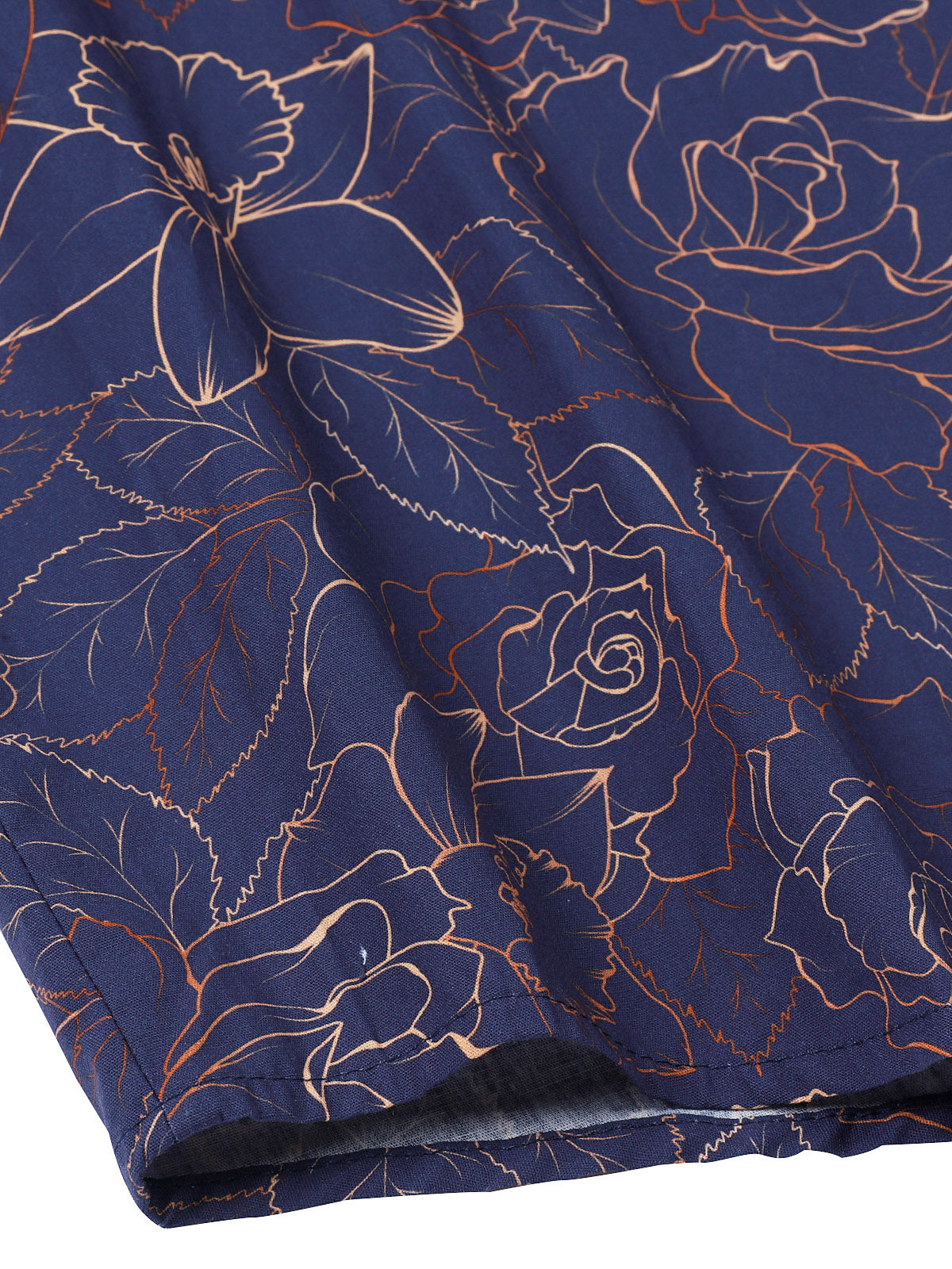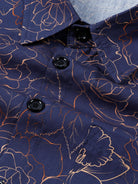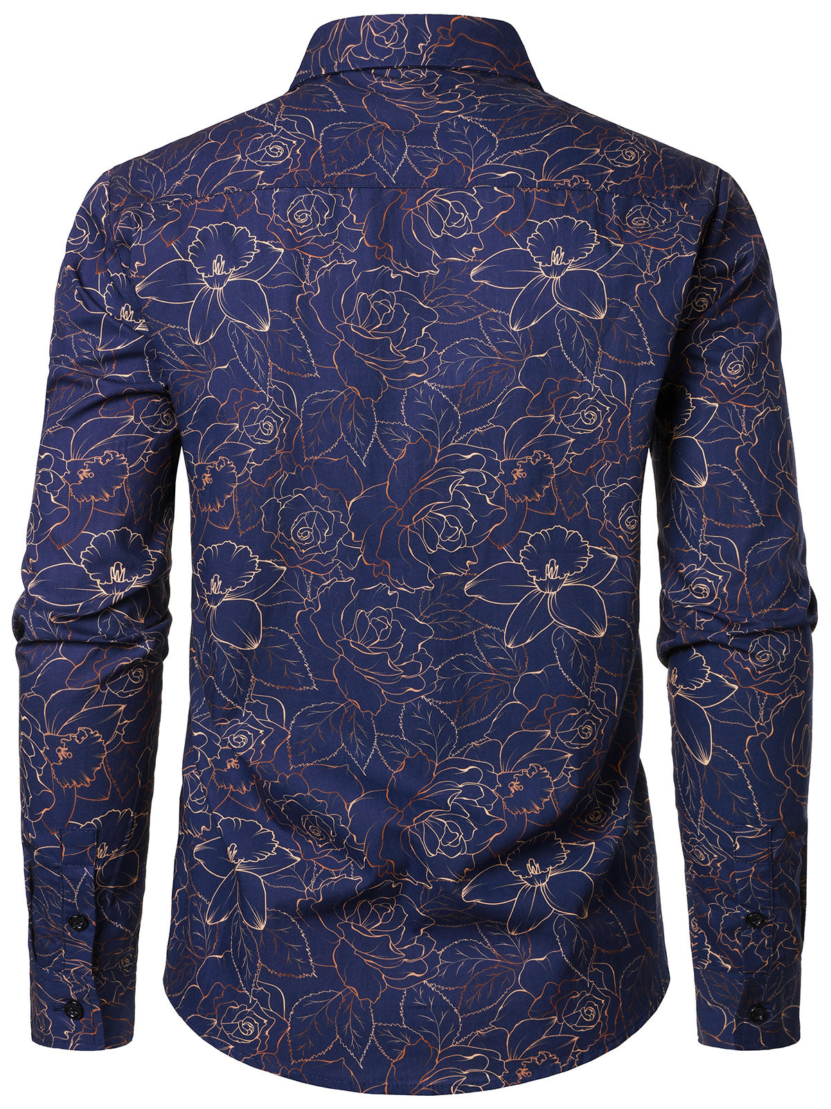 Men's Blue Casual Floral Print Long Sleeve Shirt