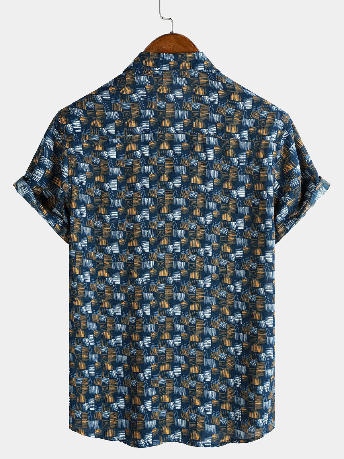 Men's Blue Casual Summer Holiday Retro Short Sleeve Shirt