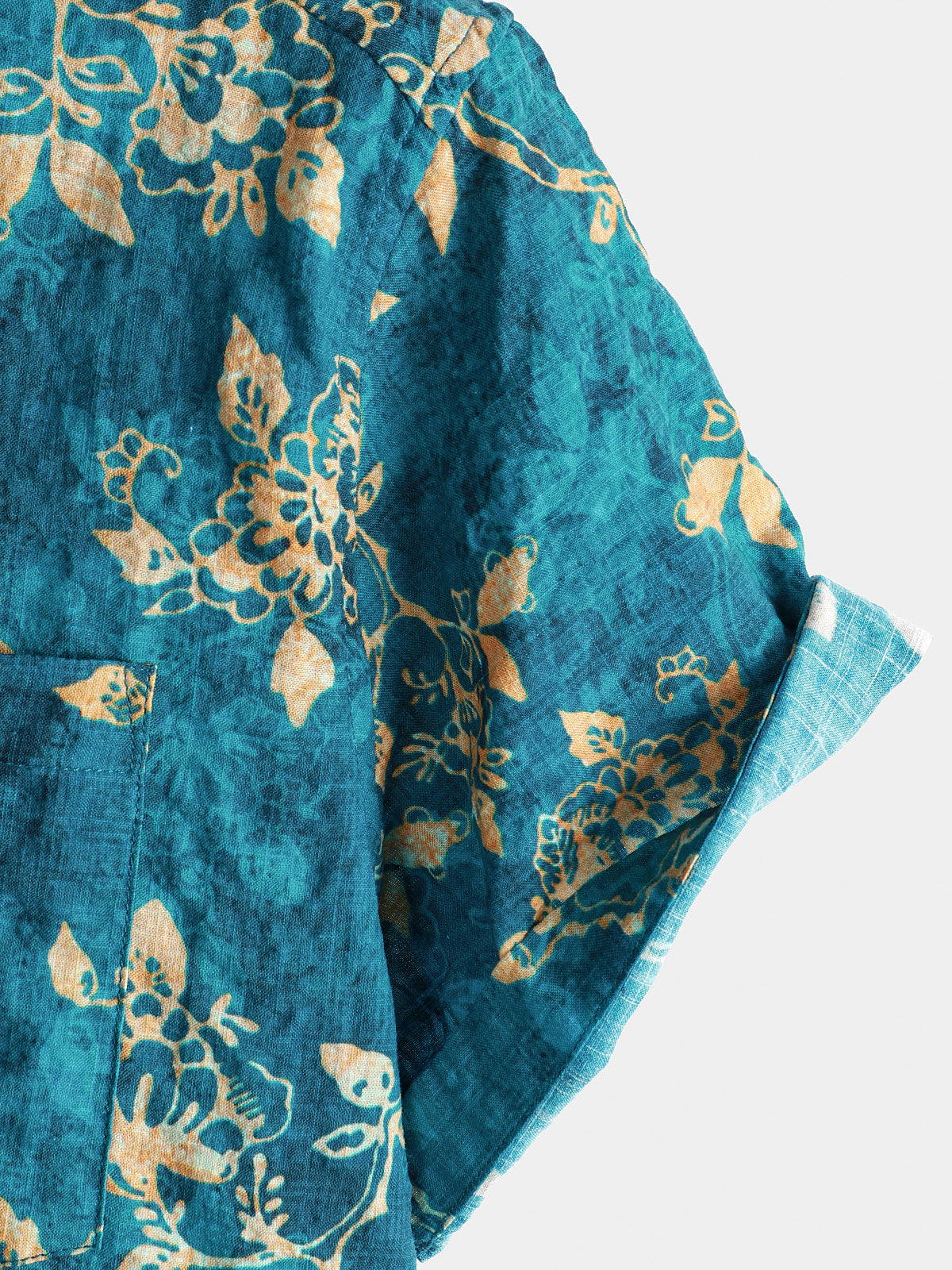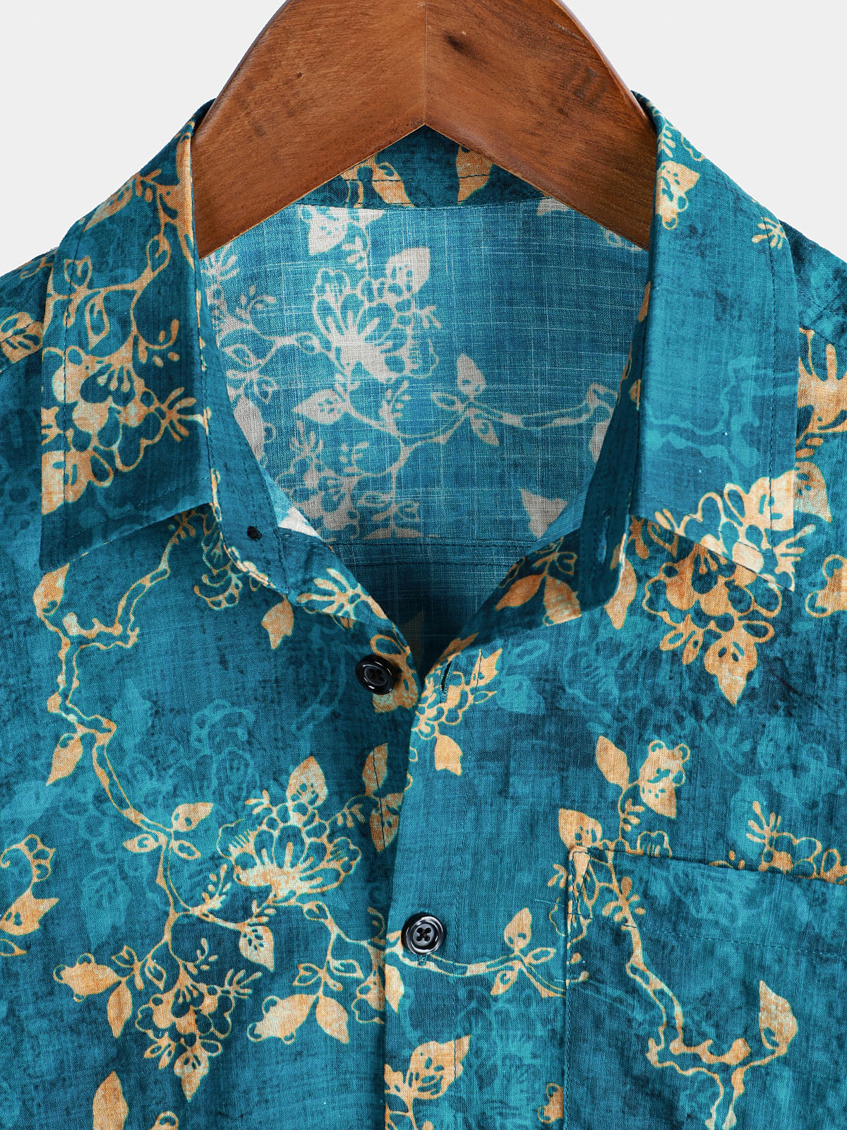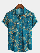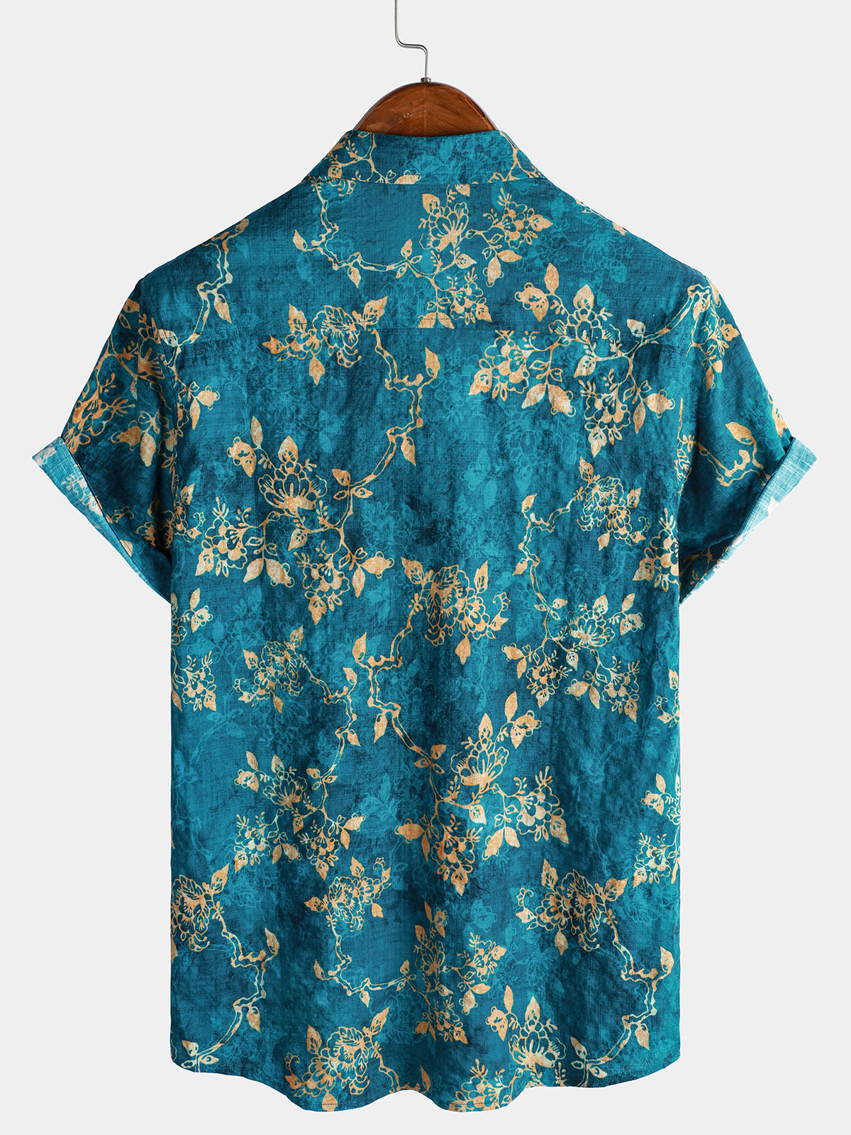 Men's Blue Floral Print Breathable Summer Short Sleeve Hawaiian Shirt