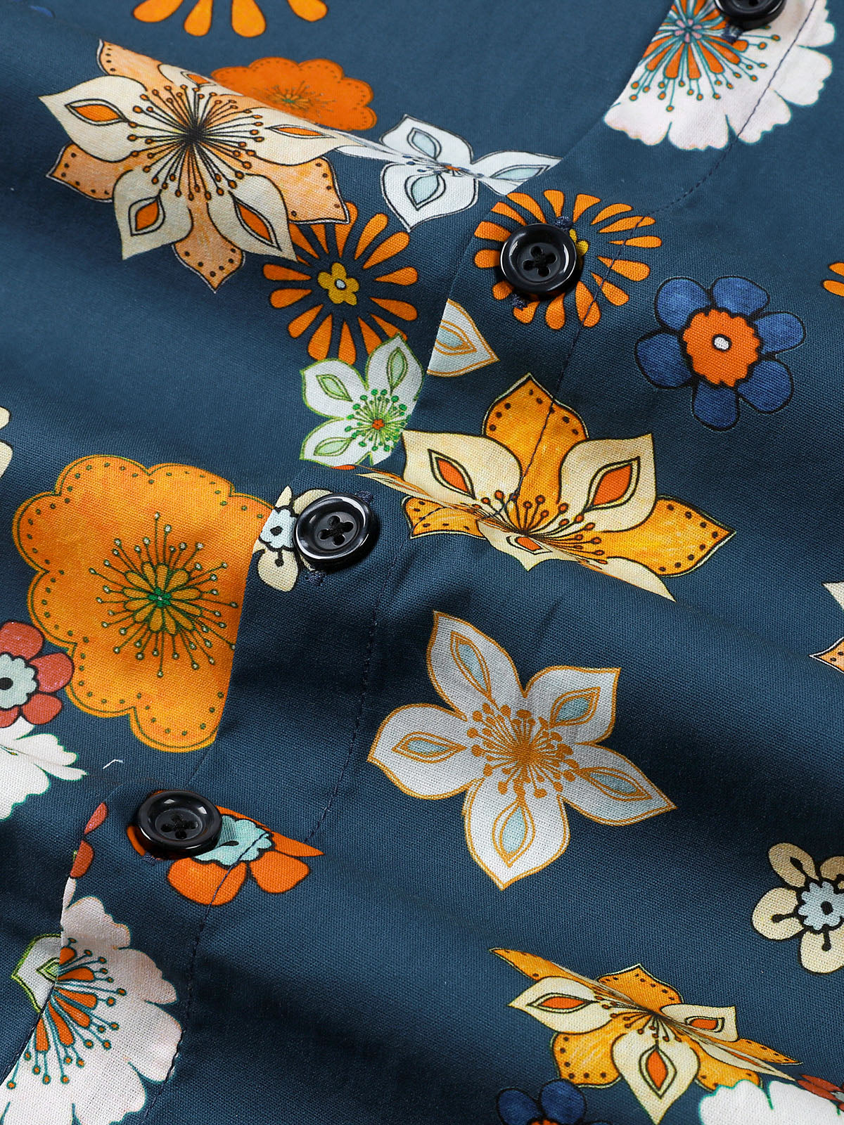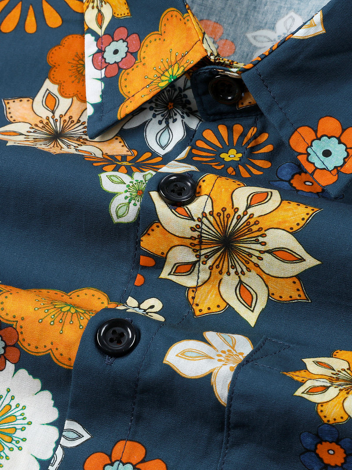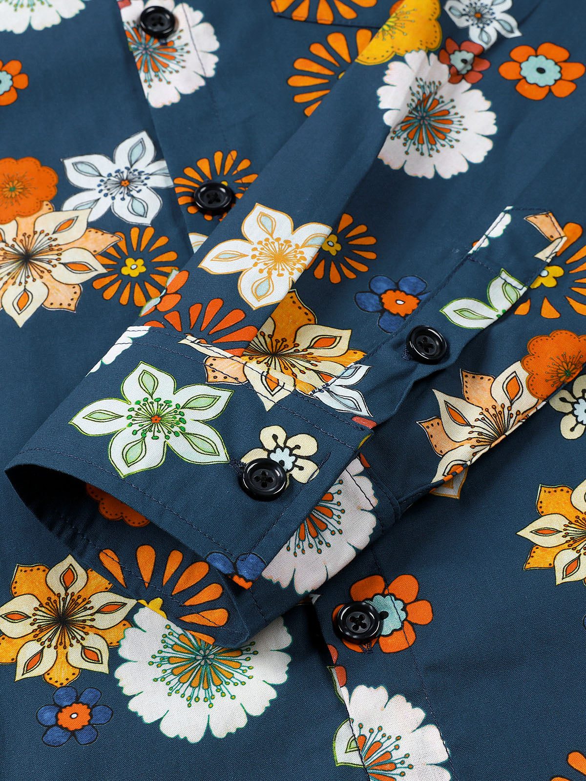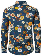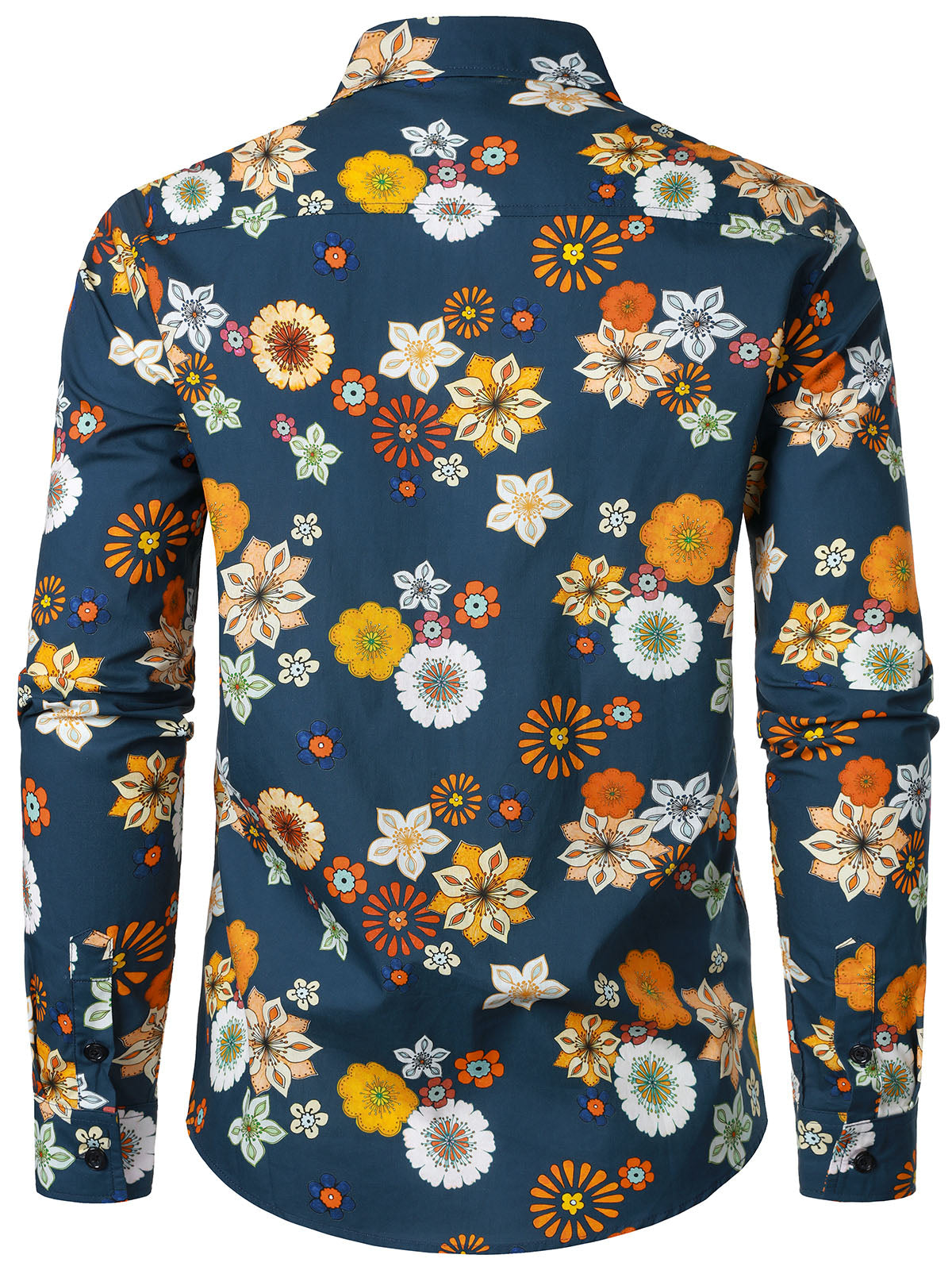 Men's Blue Floral Print Casual Long Sleeve Shirt