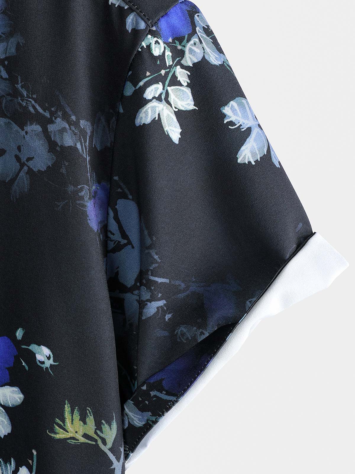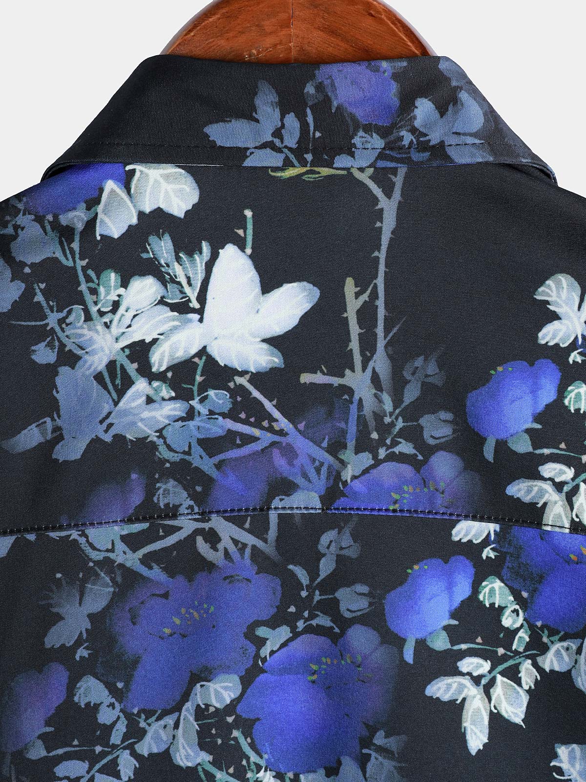 Men's Blue Rose Hawaiian Floral Print Short Sleeve Shirt