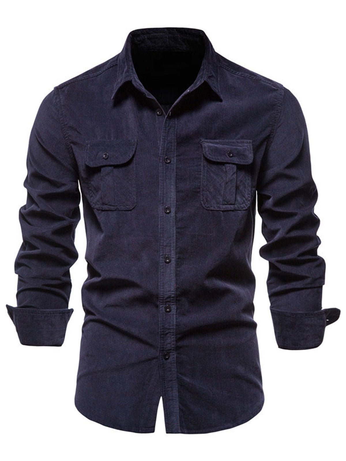 Men's Breathable Cotton Solid Color Classic Long Sleeve Shirt