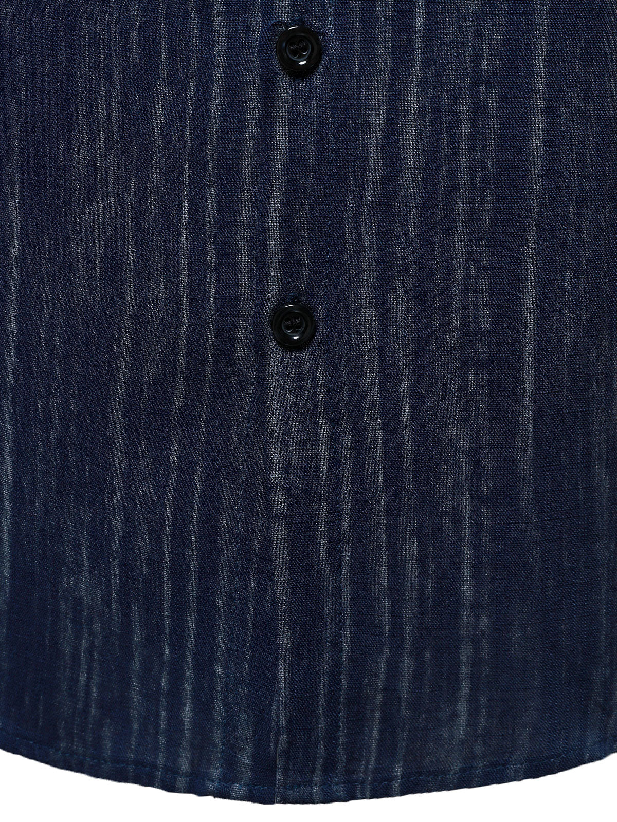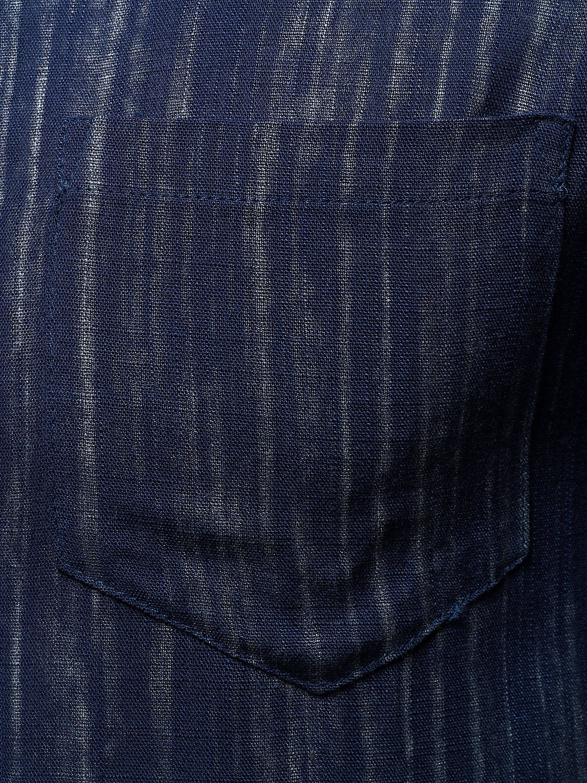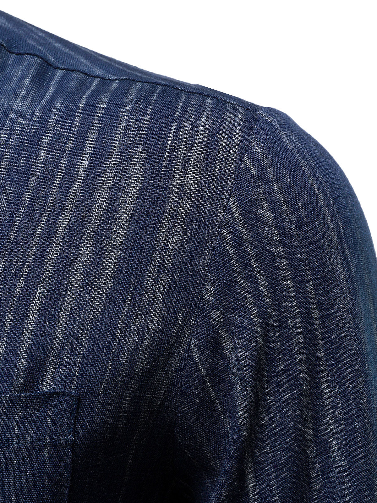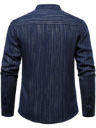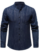 Men's Casual Breathable Pocket Long Sleeve Blue Striped Shirt