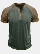 Men's Casual Henley Two-tone Short Sleeve T-Shirt