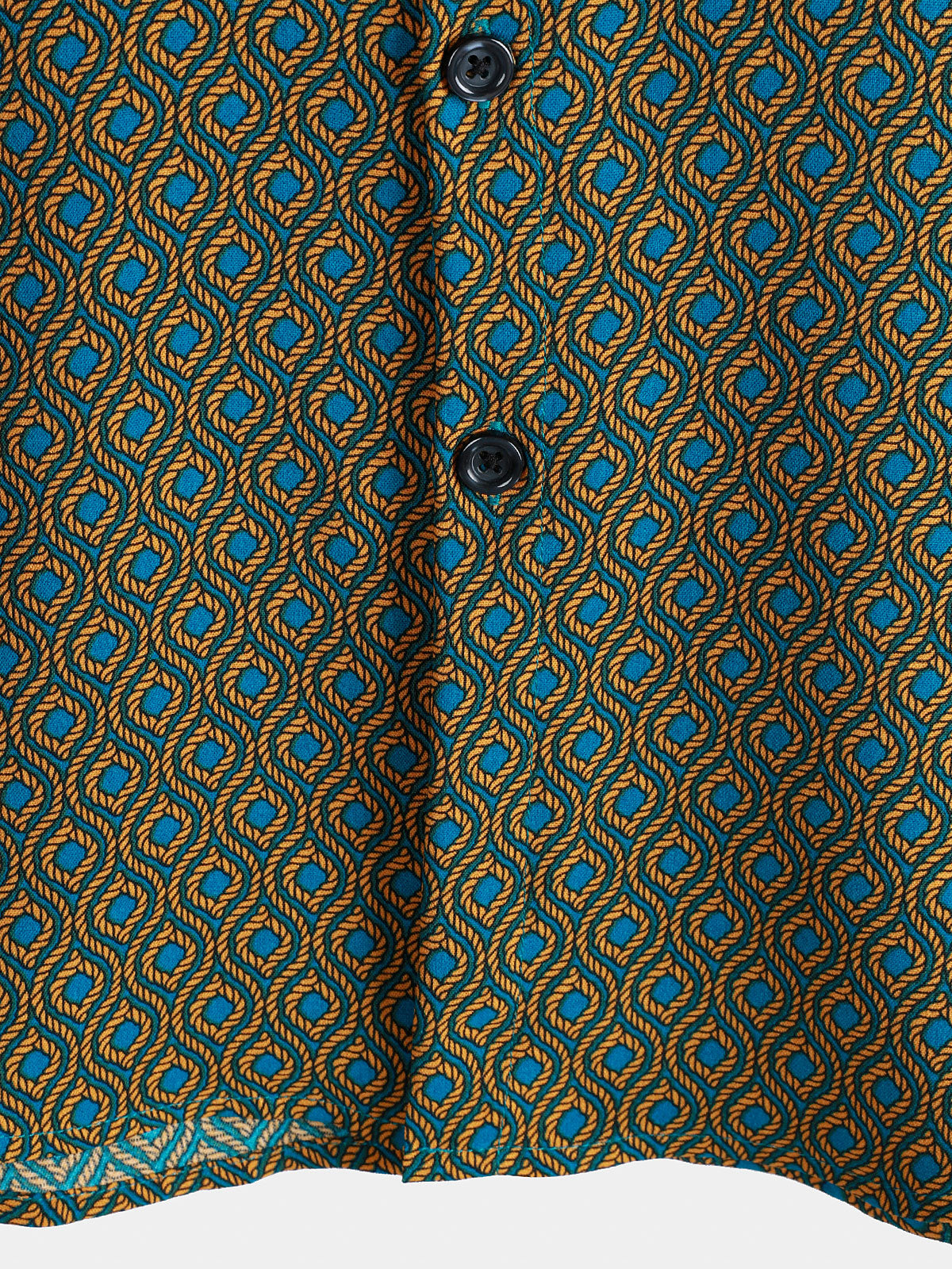 Men's Casual Holiday Blue Short Sleeve Button Up Retro Shirt