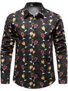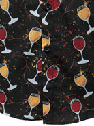 Men's Casual Holiday Wine Glass Print Black Long Sleeve Cotton Party Shirt