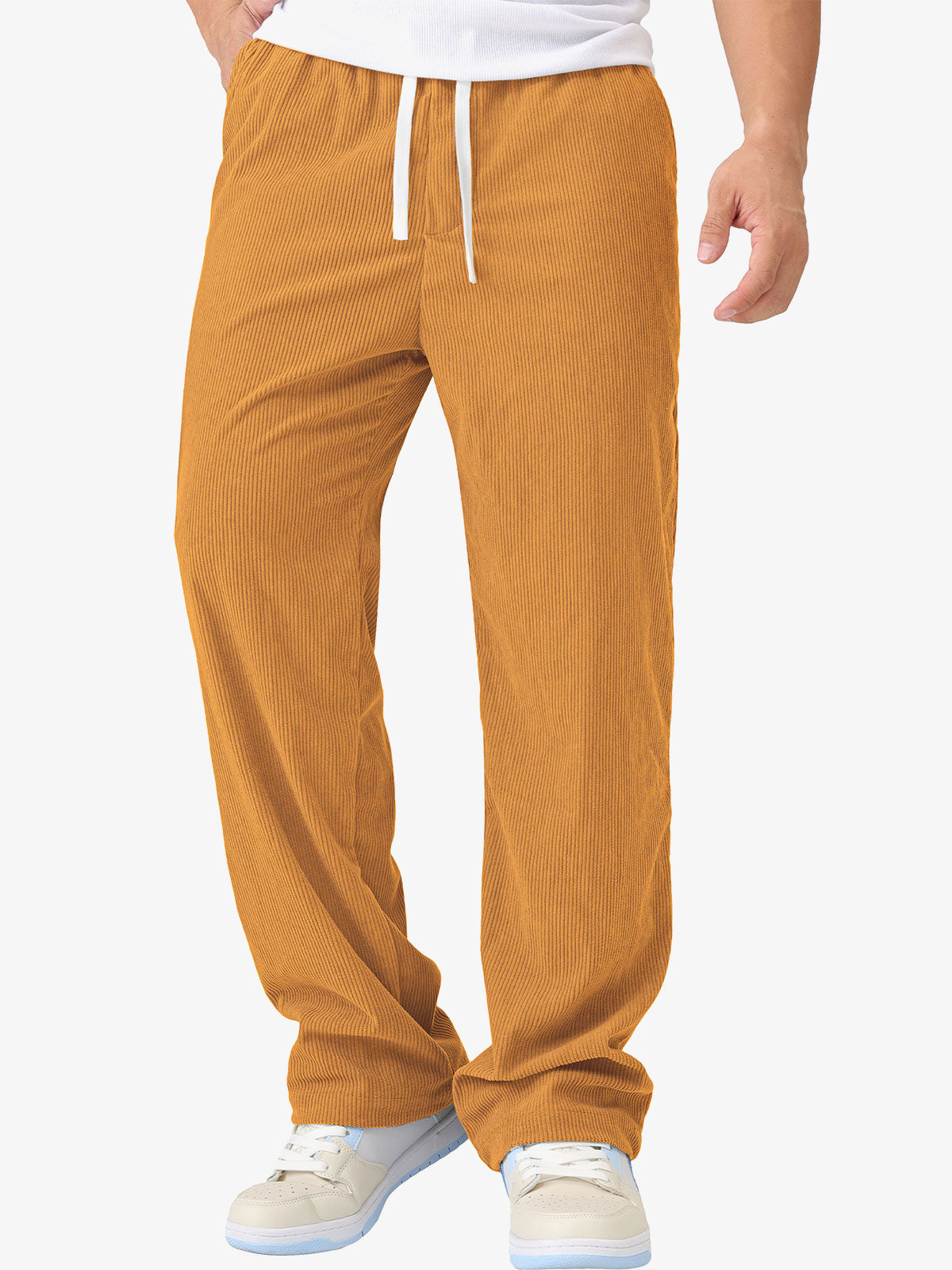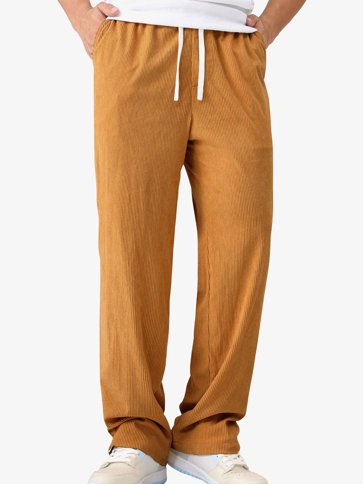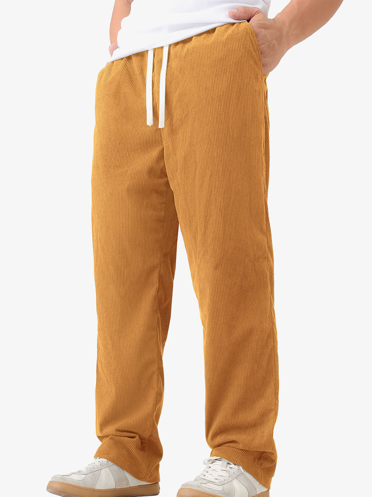 Men's Casual Warm Elastic Waist Drawstring Corduroy Pants