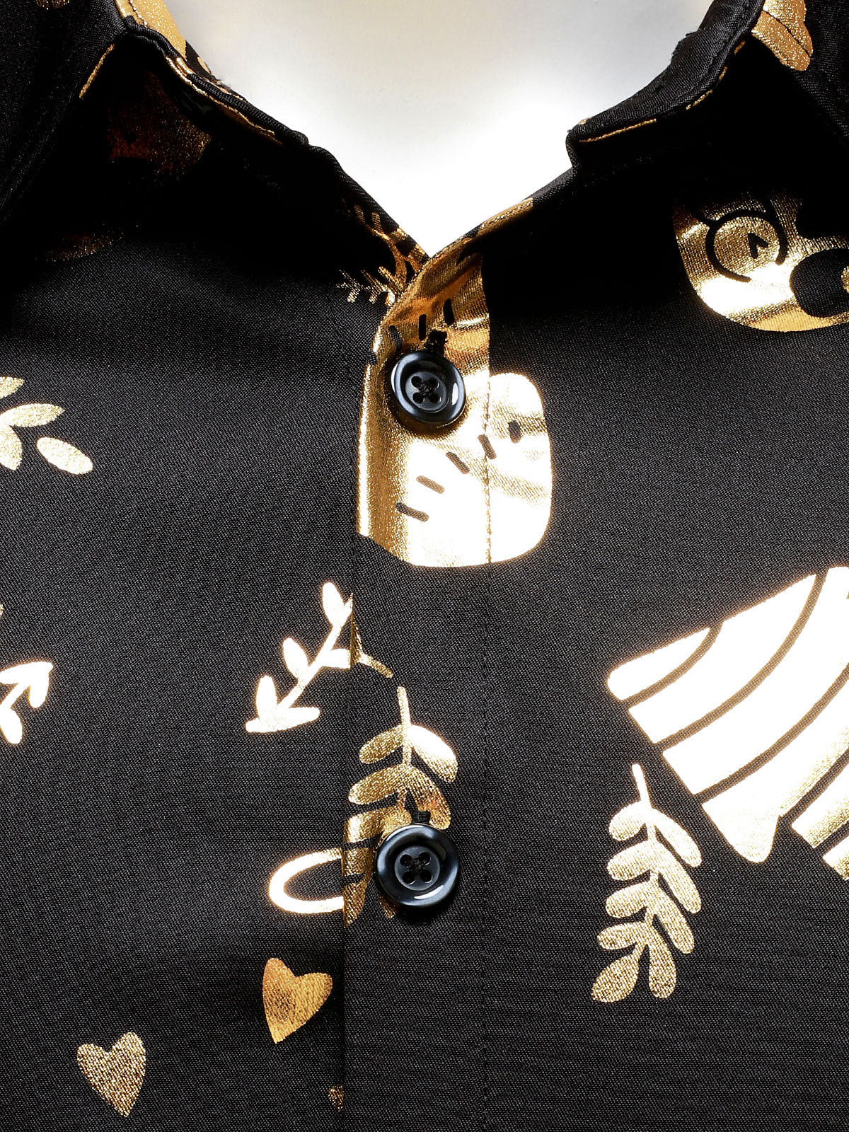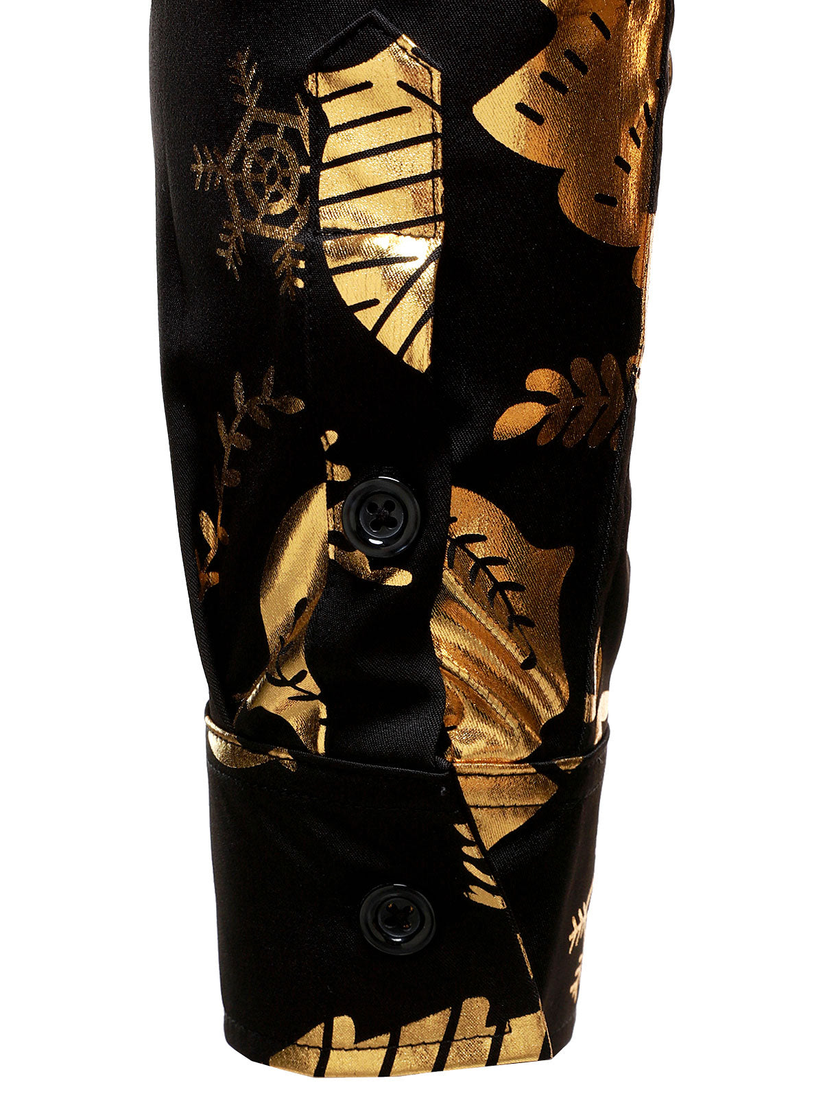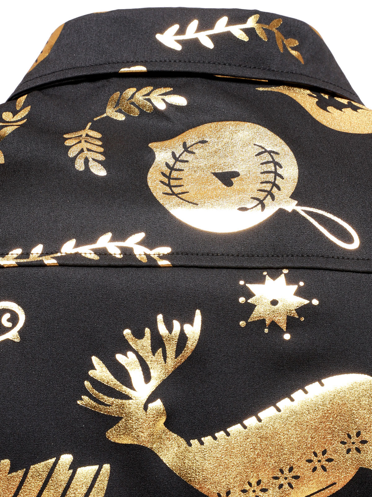 Men's Christmas Party Festive Shiny Gold Reindeer Stocking Print Long Sleeve Button Down Shirt