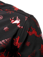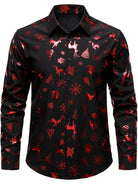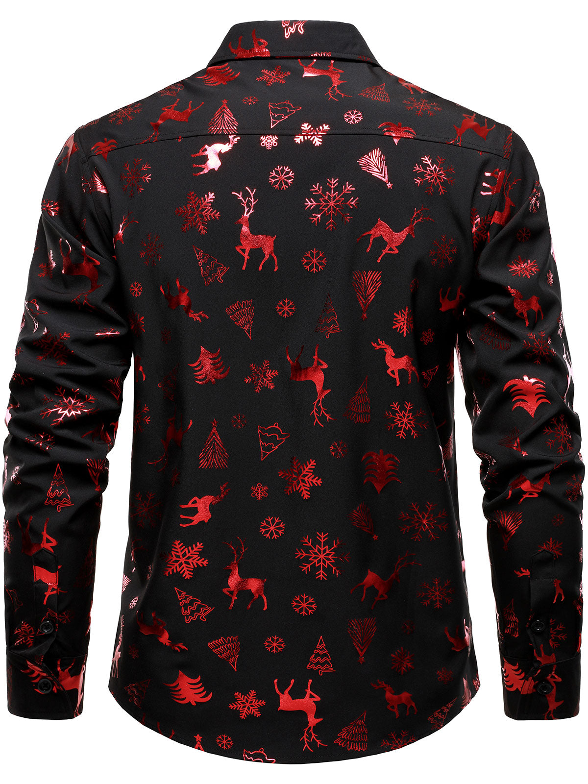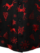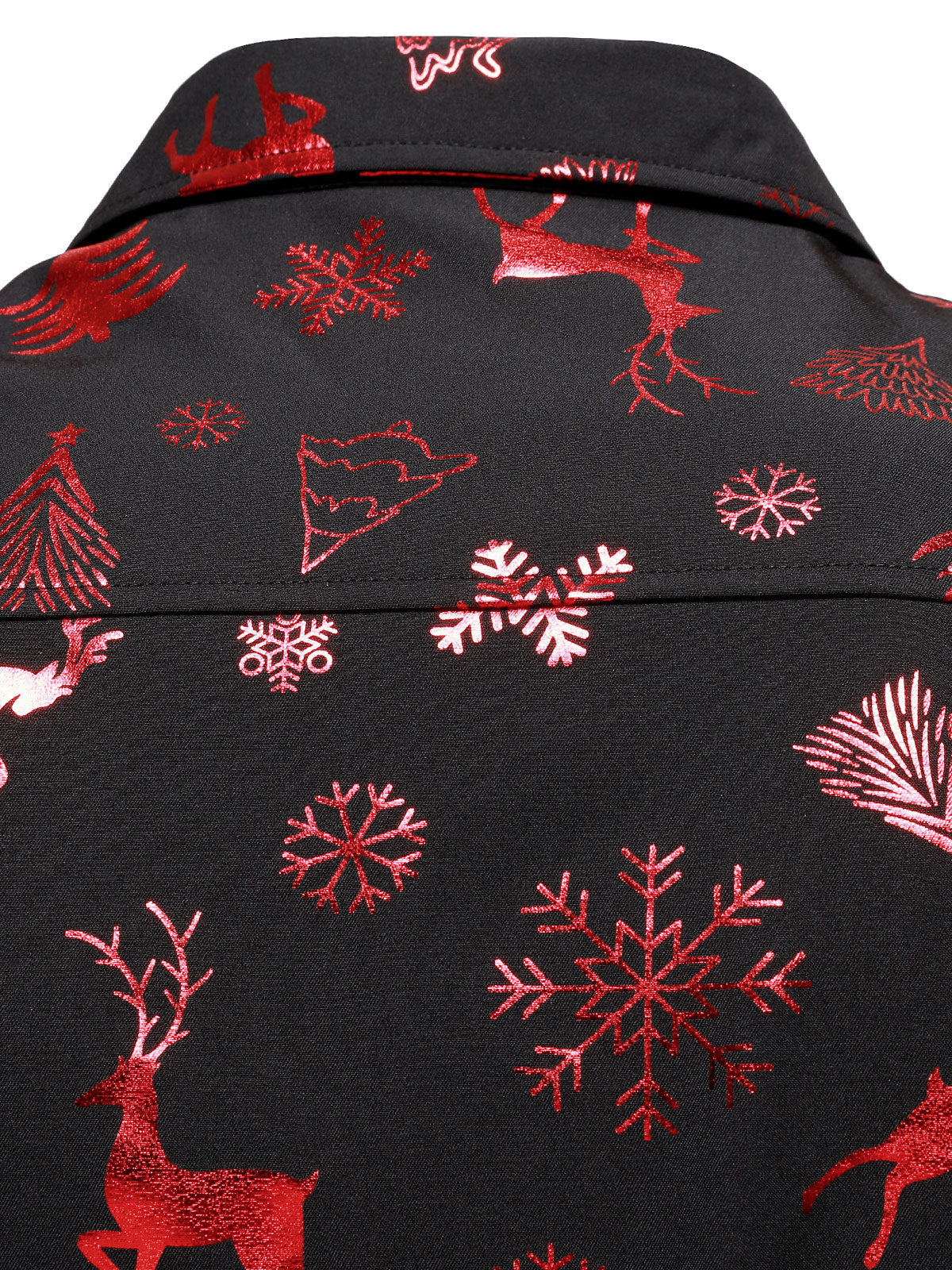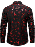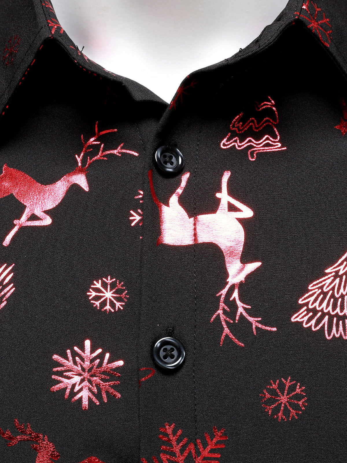 Men's Christmas Party Glittery Red Reindeer Snowflake Print Long Sleeve Button Down Shirt