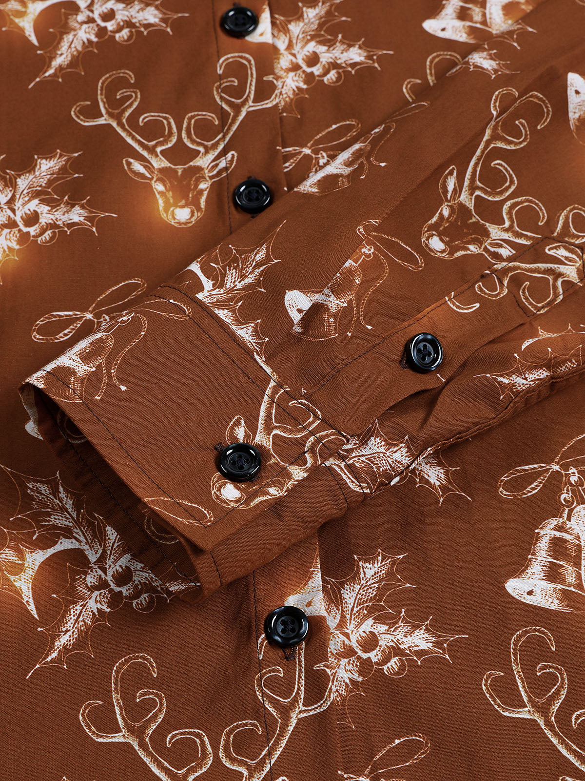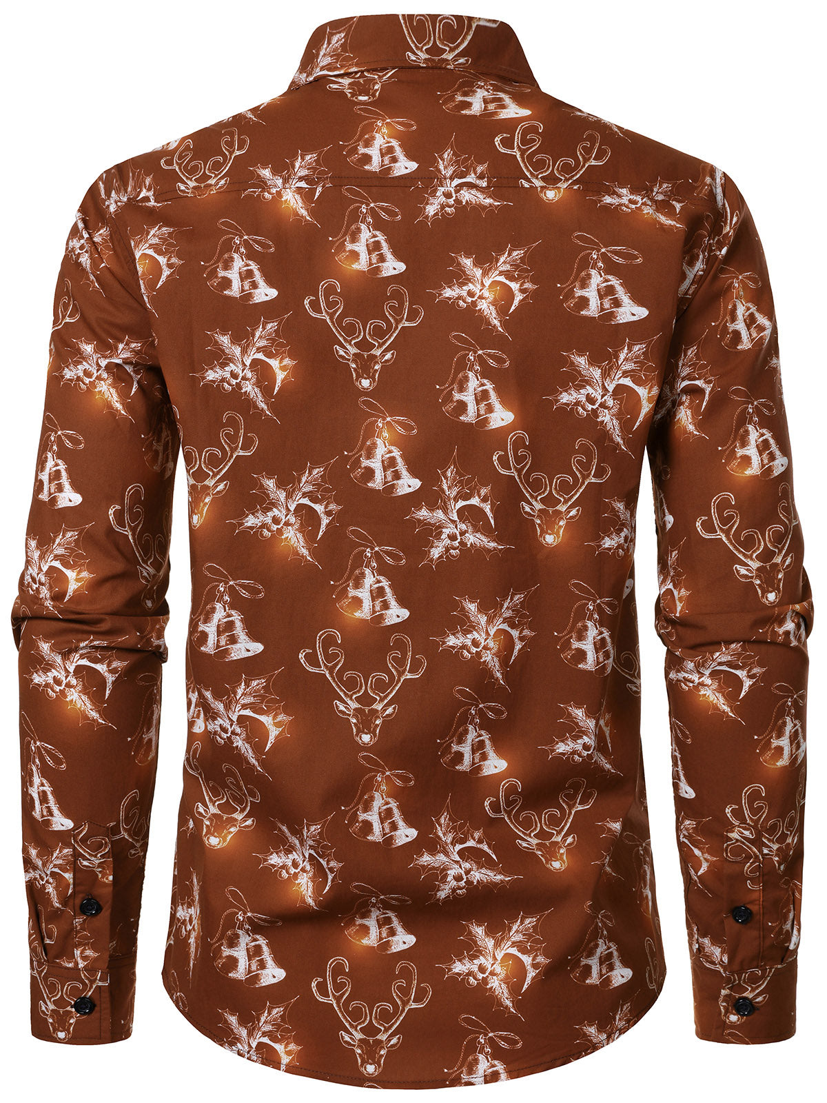 Men's Christmas Reindeer Cotton Long Sleeved Shirt