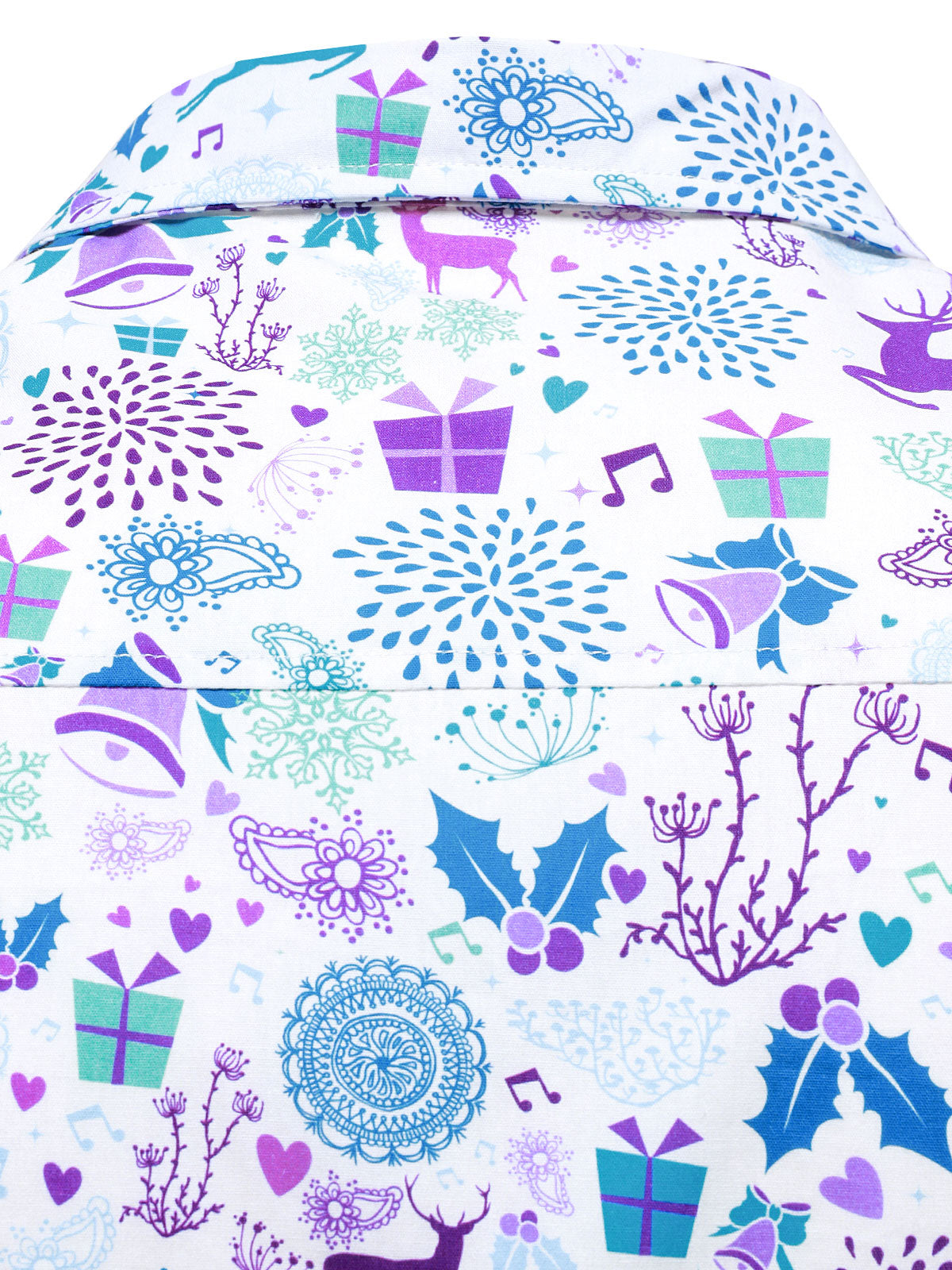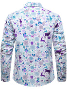 Men's Christmas Reindeer Festive Print Xmas Holiday White Long Sleeve Shirt