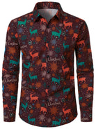 Men's Christmas Reindeer Long Sleeve Red Cotton Shirt