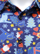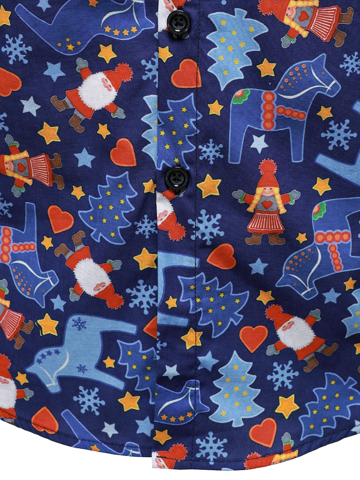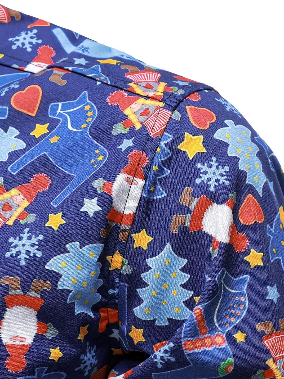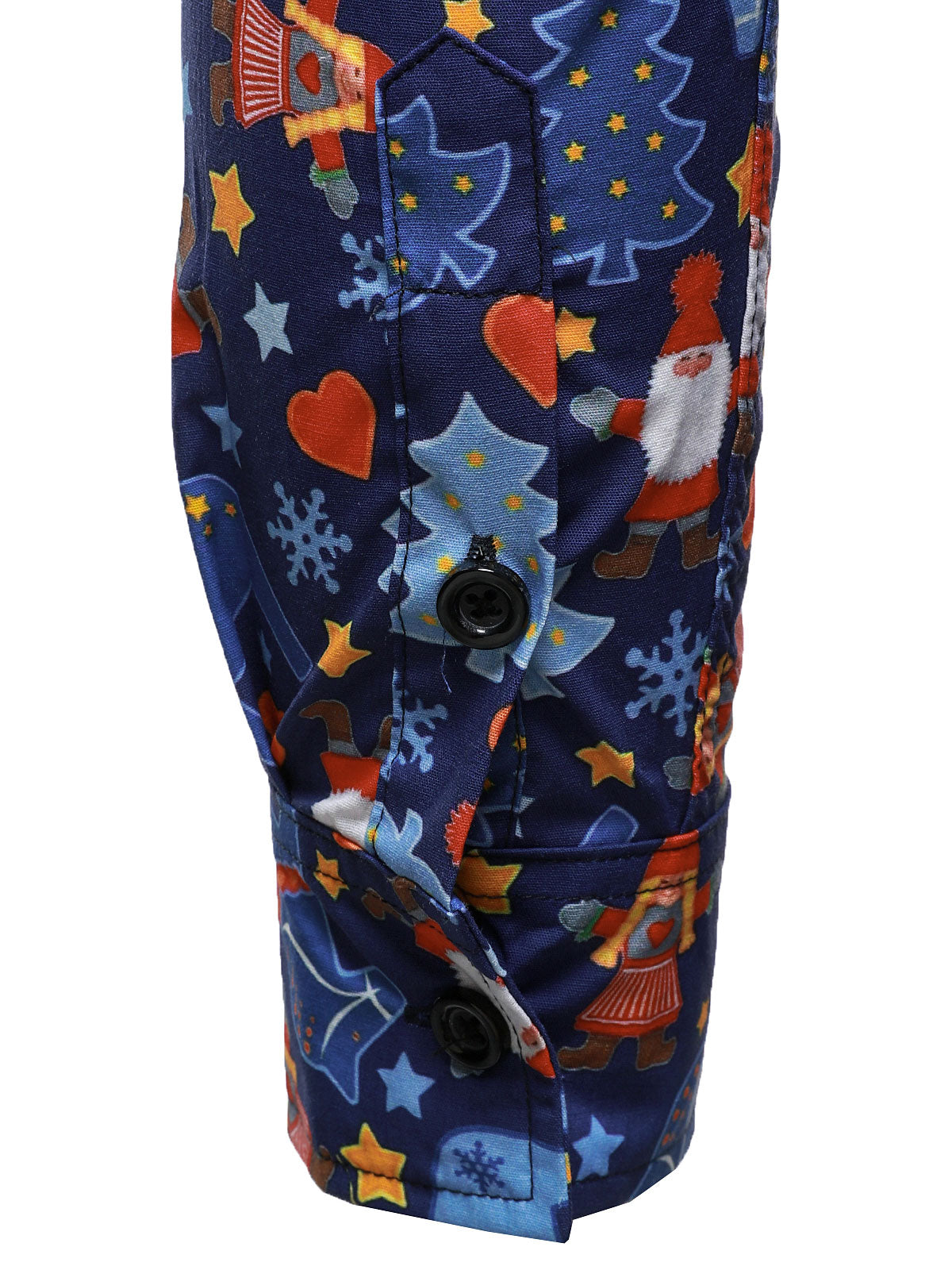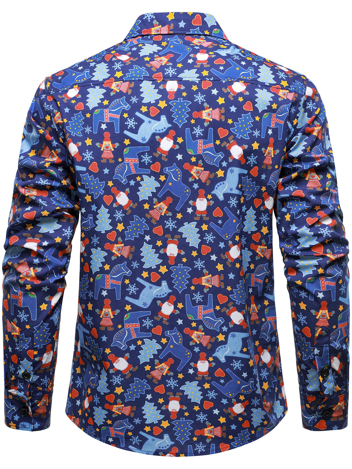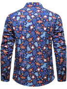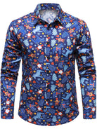 Men's Christmas Themed Funny Holiday Festive Print Blue Long Sleeve Shirt