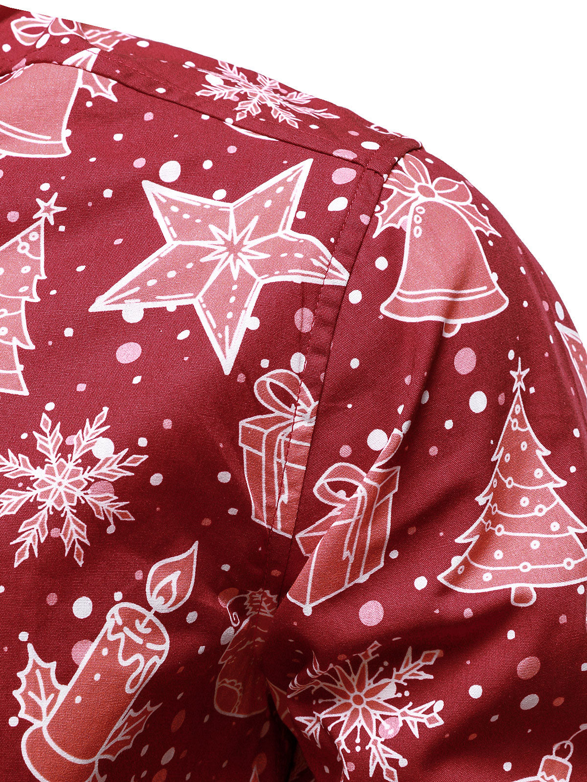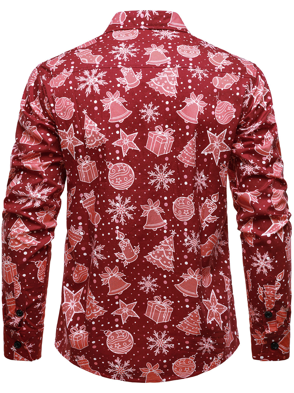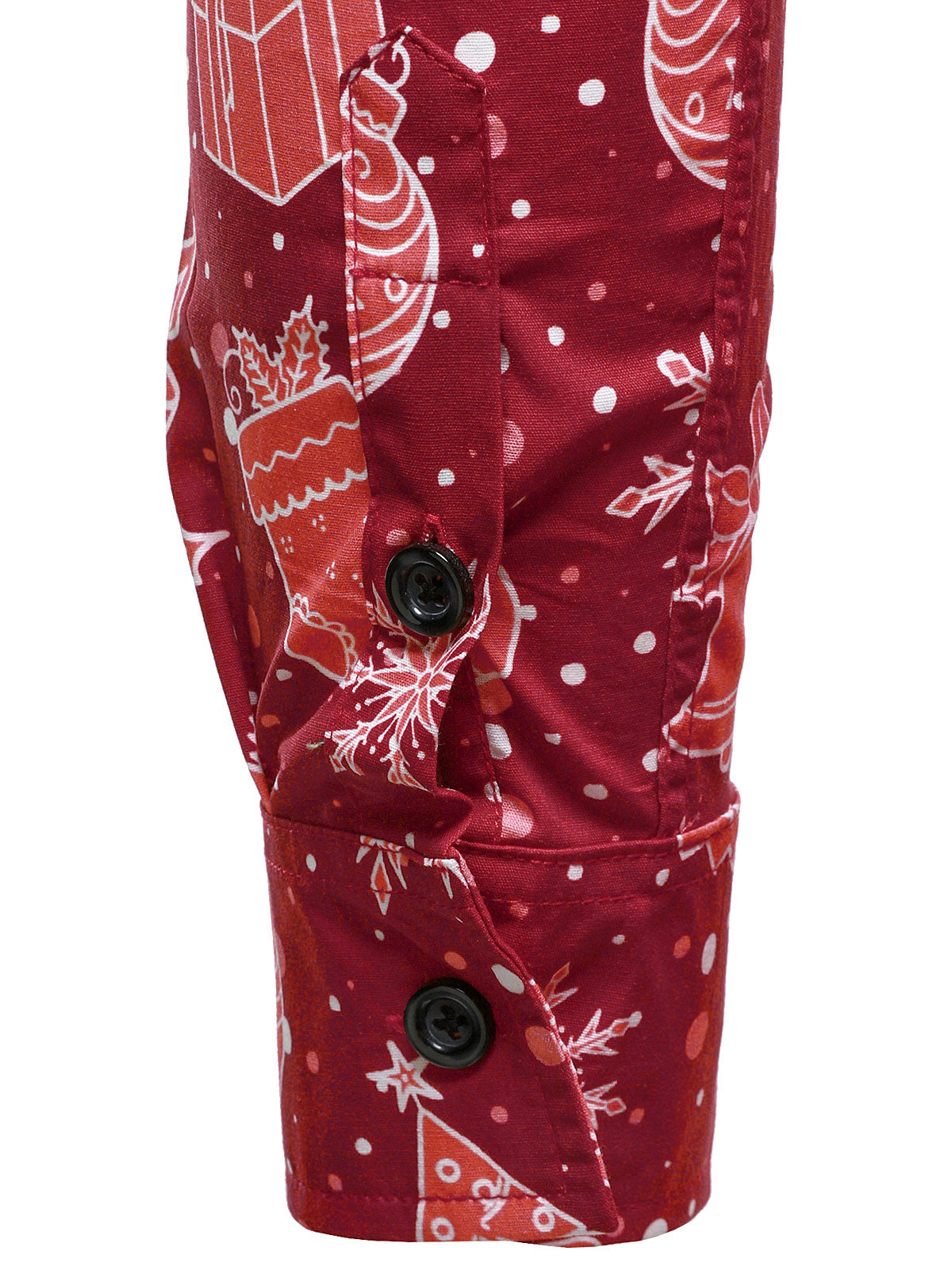 Men's Christmas Themed Funny Holiday Festive Print Red Long Sleeve Shirt