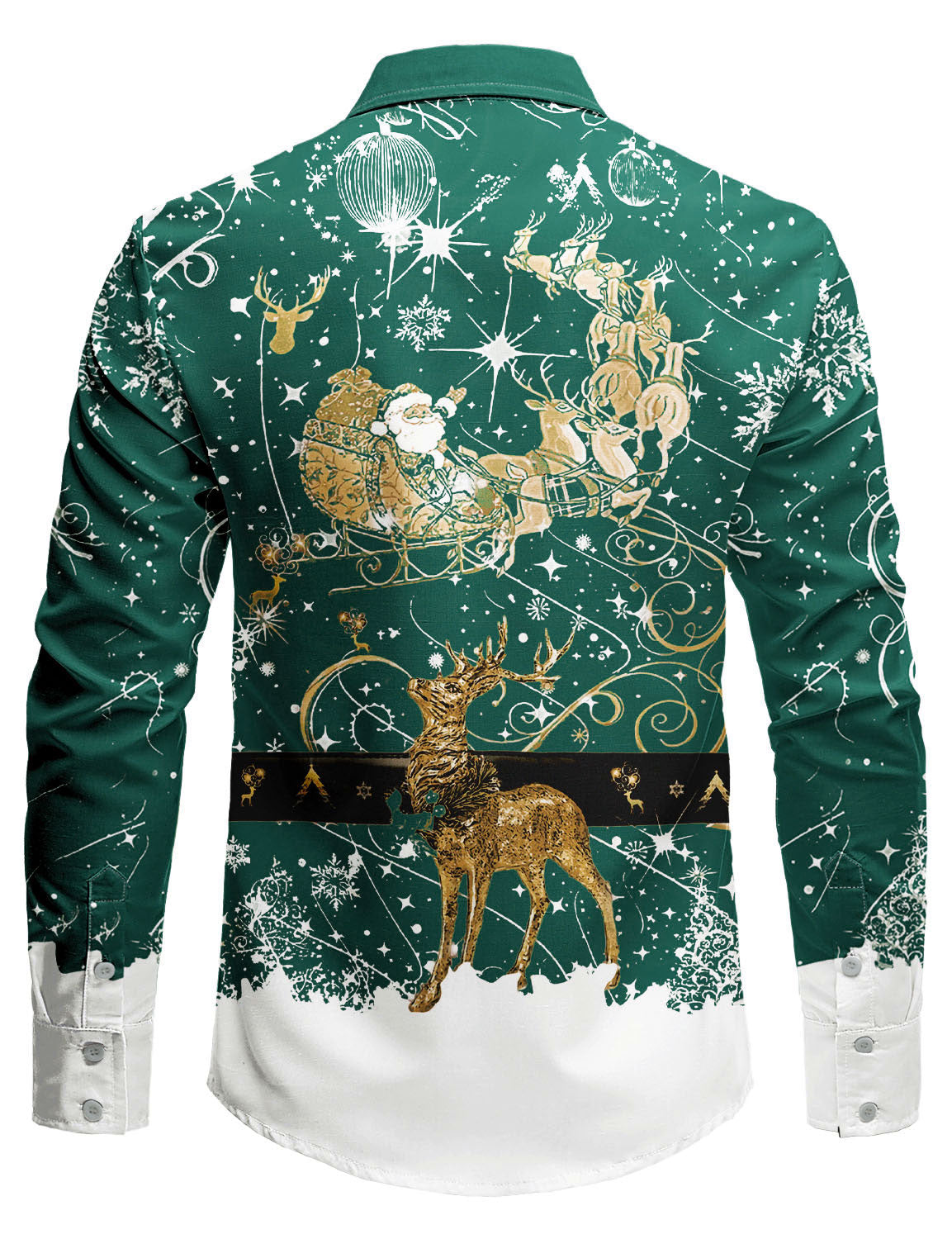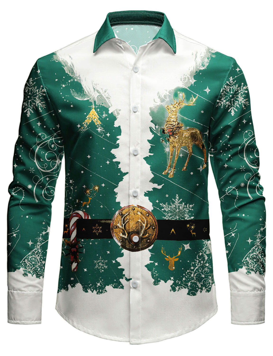 Men's Christmas Themed Top Green Funny Outfit Vacation Button Down Long Sleeve Shirt