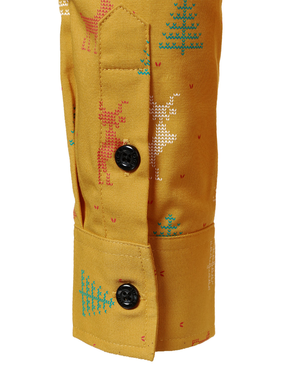 Men's Christmas Tree Elk Print Breathable Yellow Long Sleeve Shirt