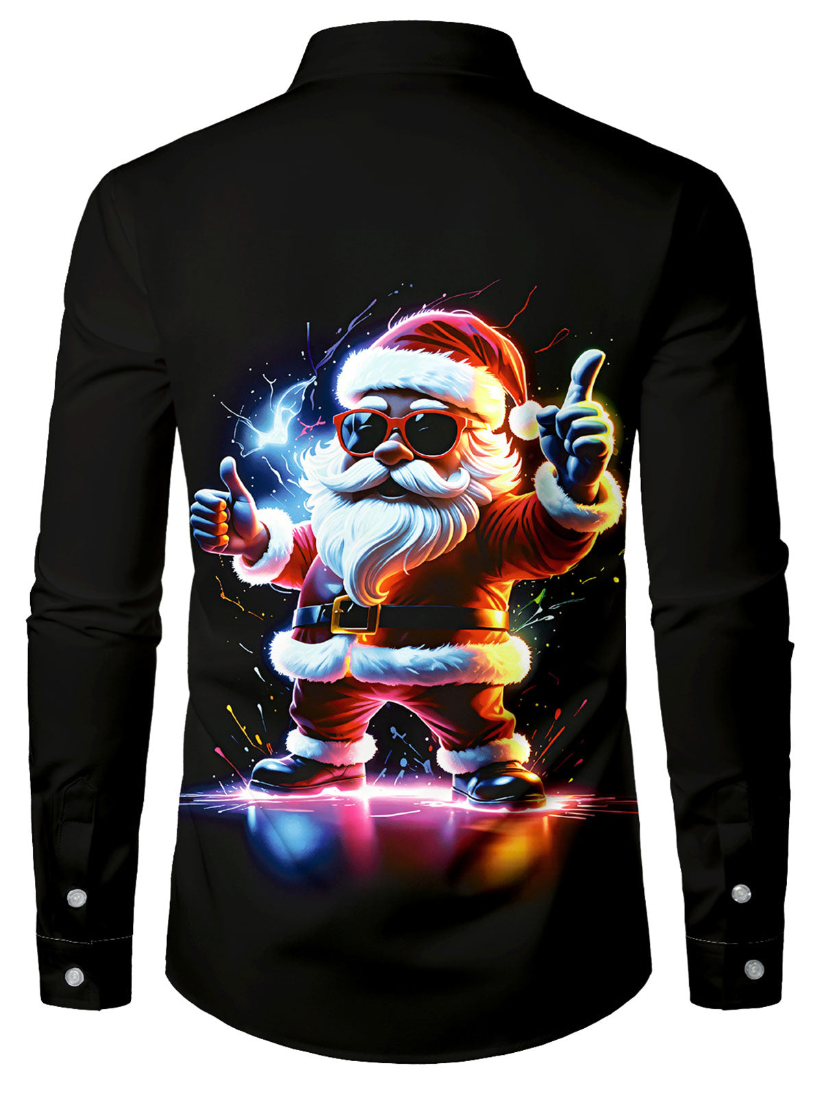 Men's Cool Neon Santa Christmas Holiday Long Sleeve Shirt