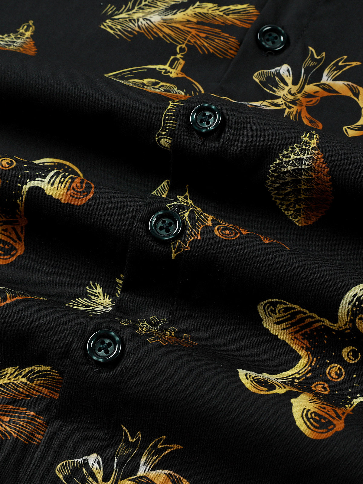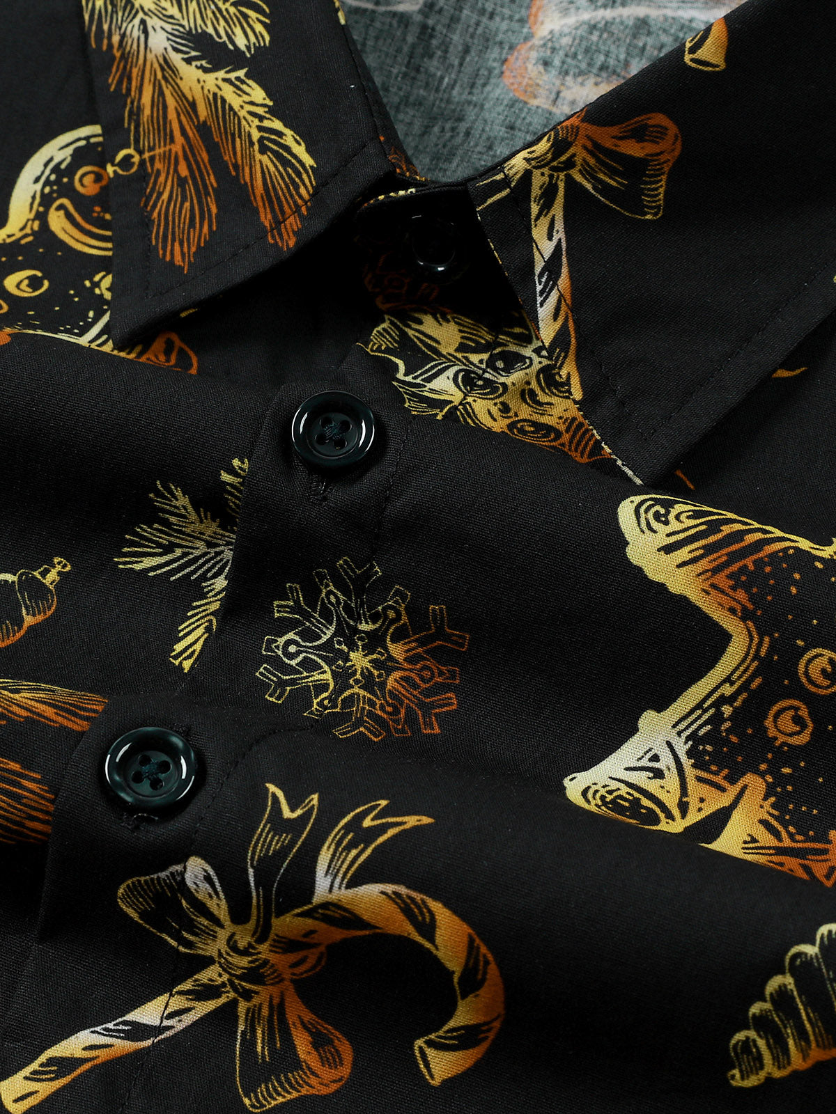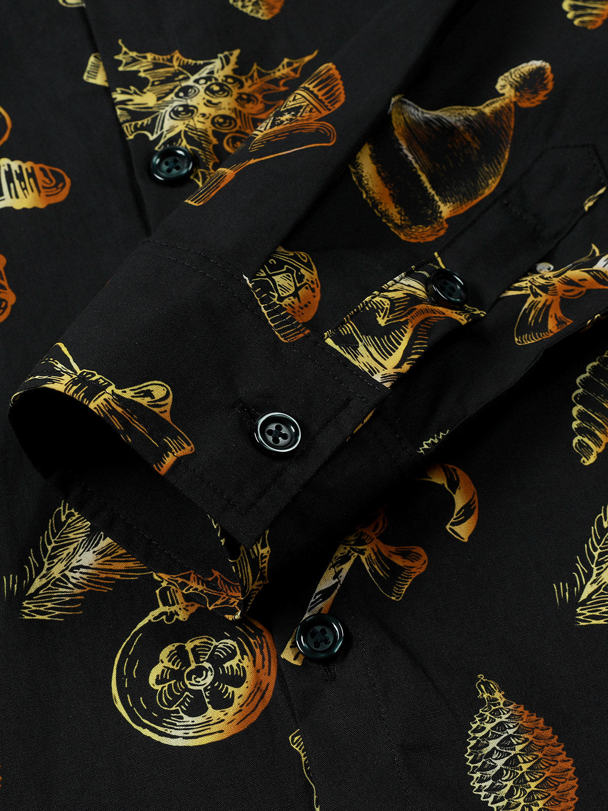 Men's Cotton Christmas Shiny Gingerbread Man Long Sleeve Shirt