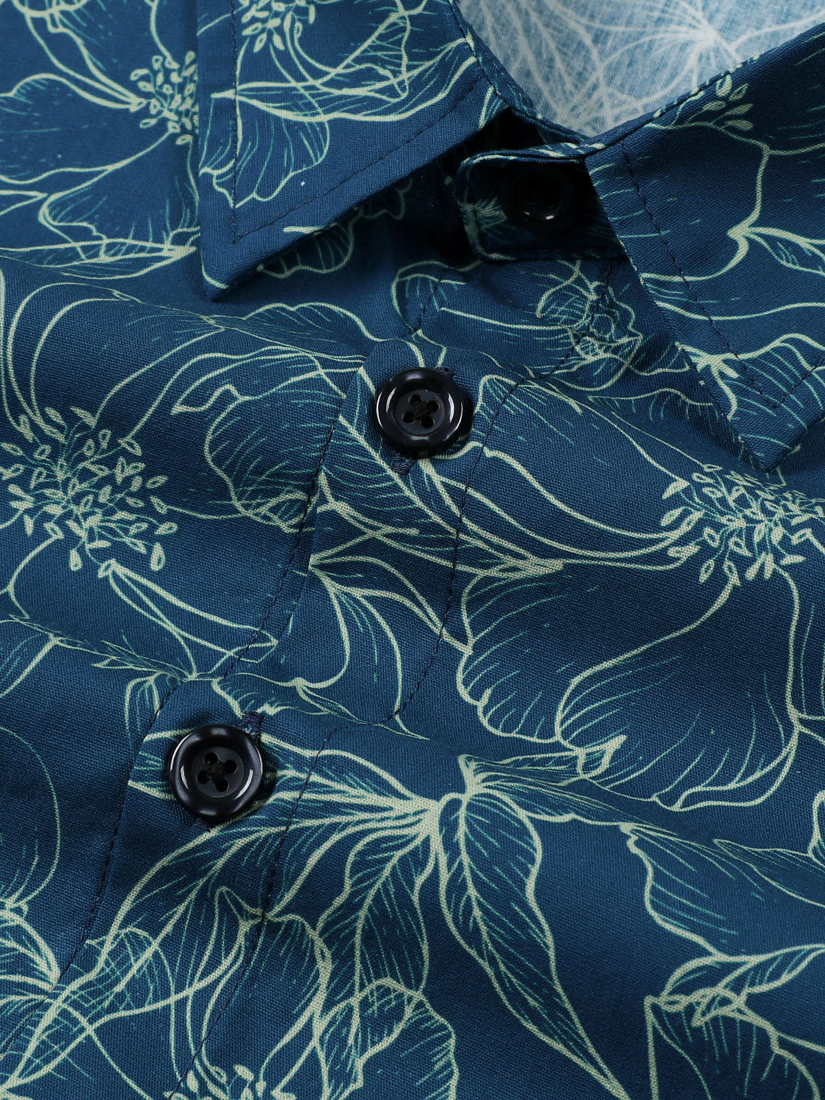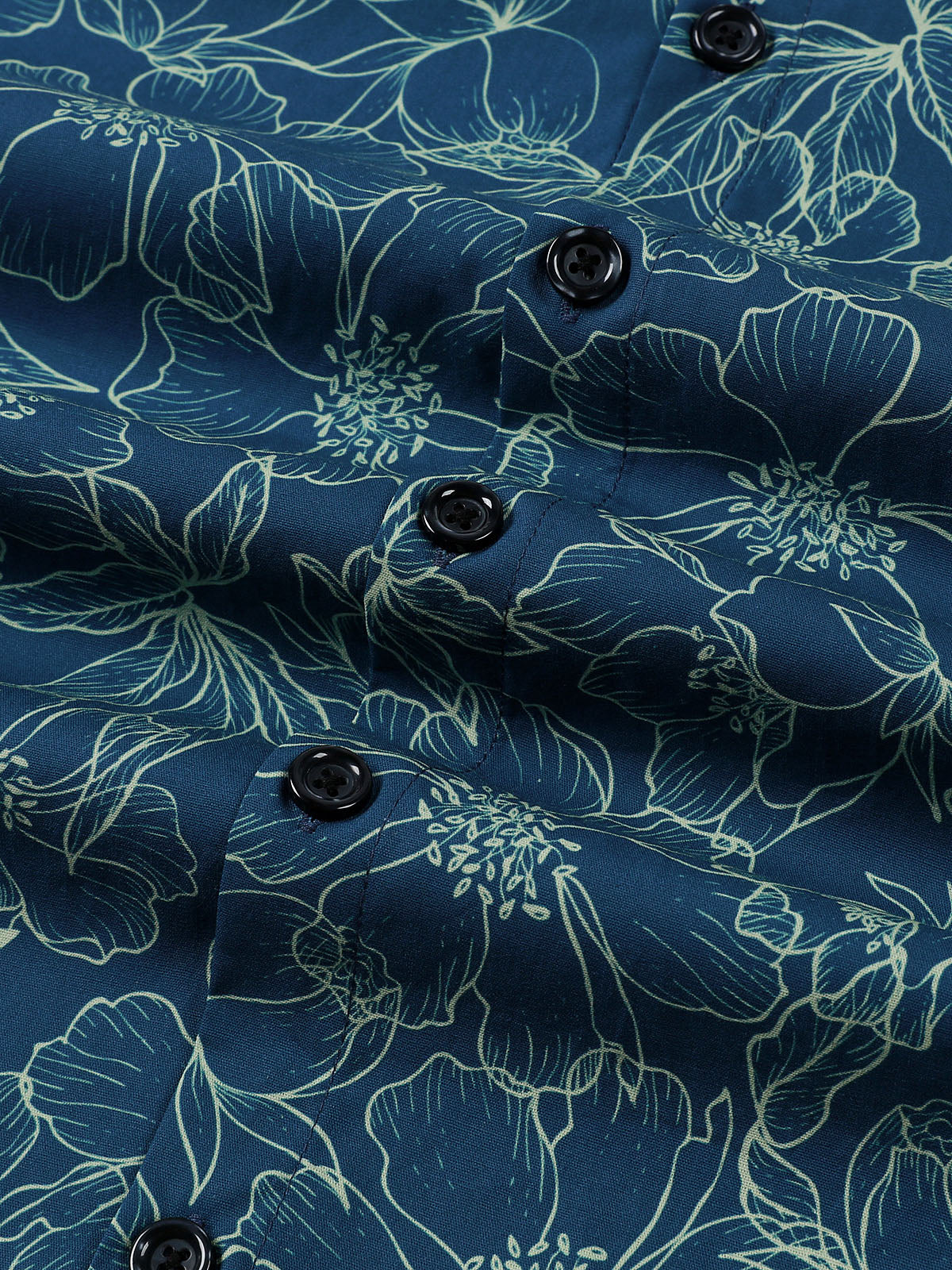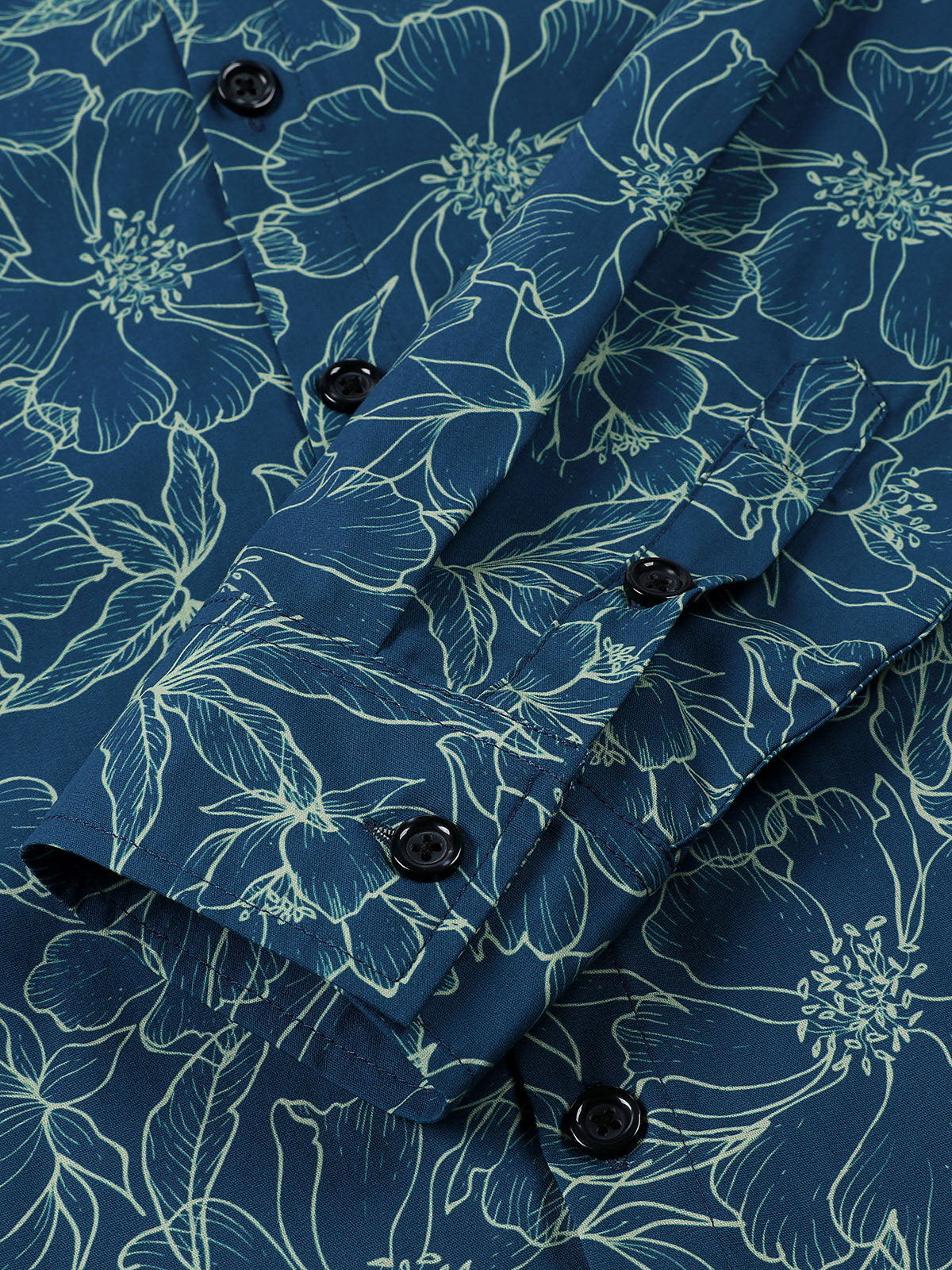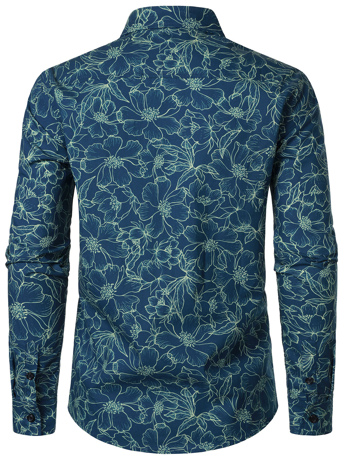 Men's Cotton Floral Blue Long Sleeve Shirt