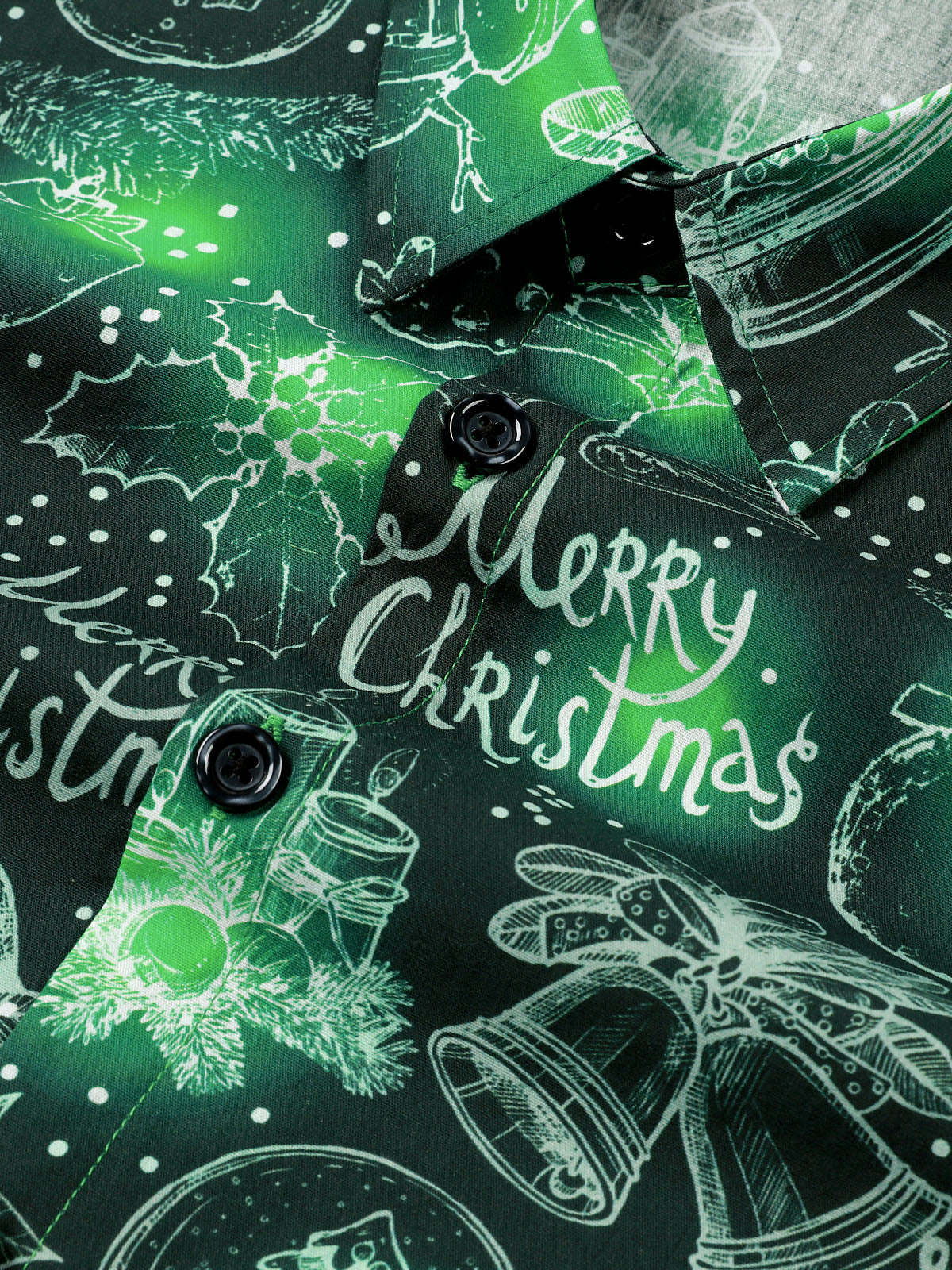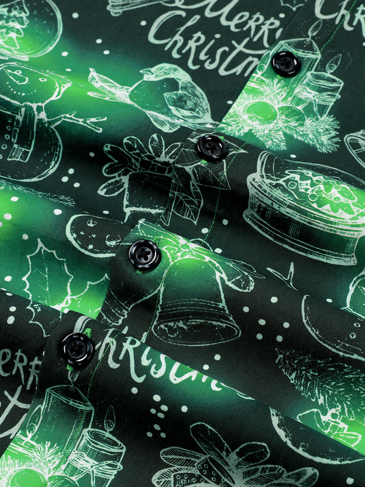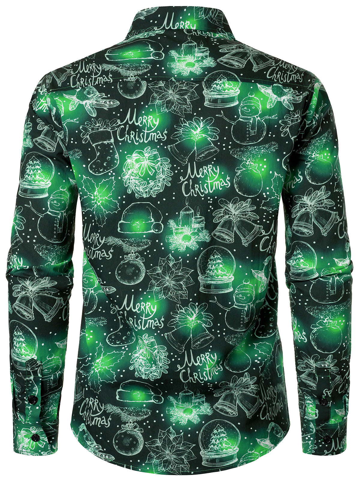 Men's Cotton Green Christmas Long Sleeve Shirt