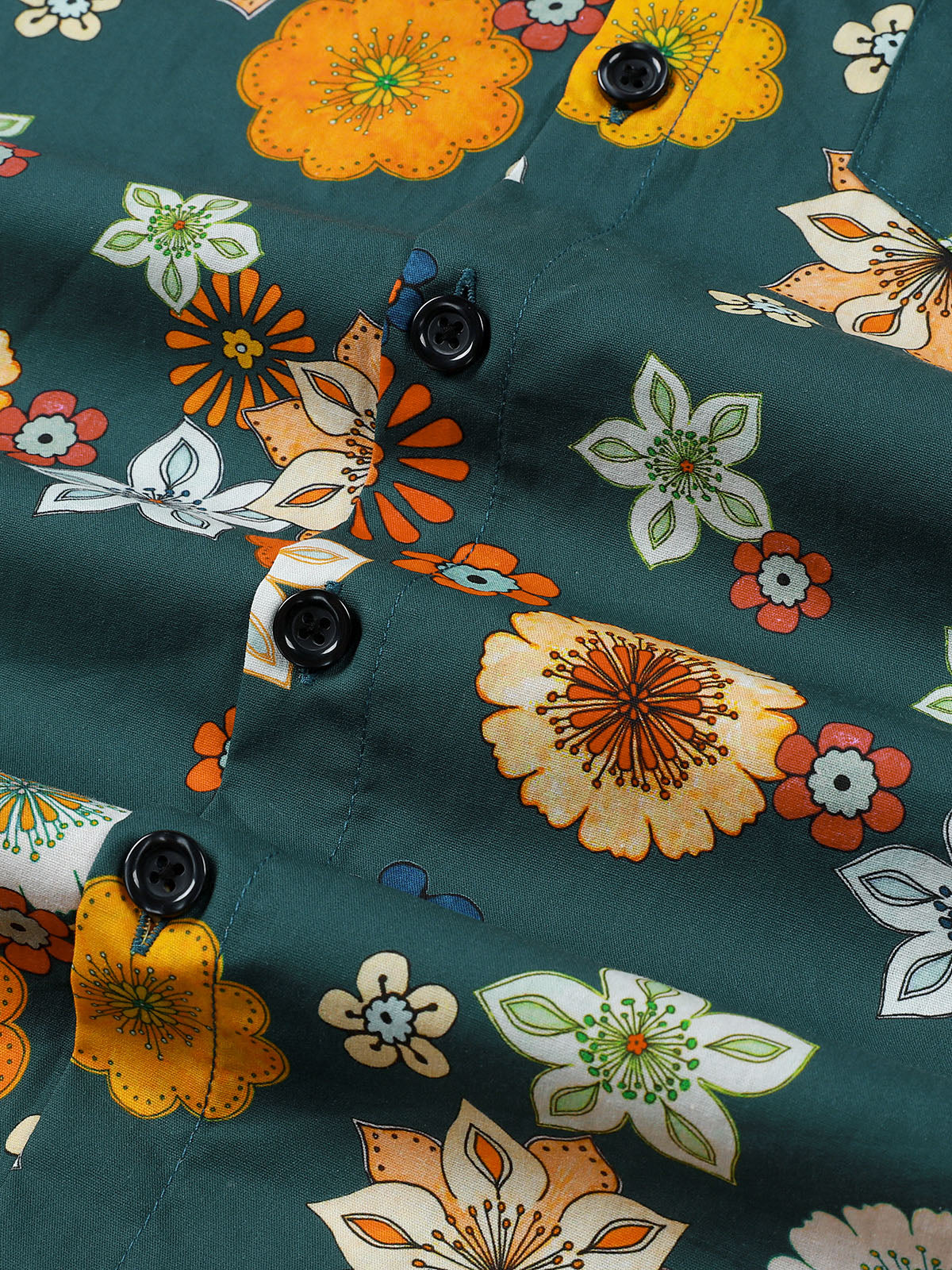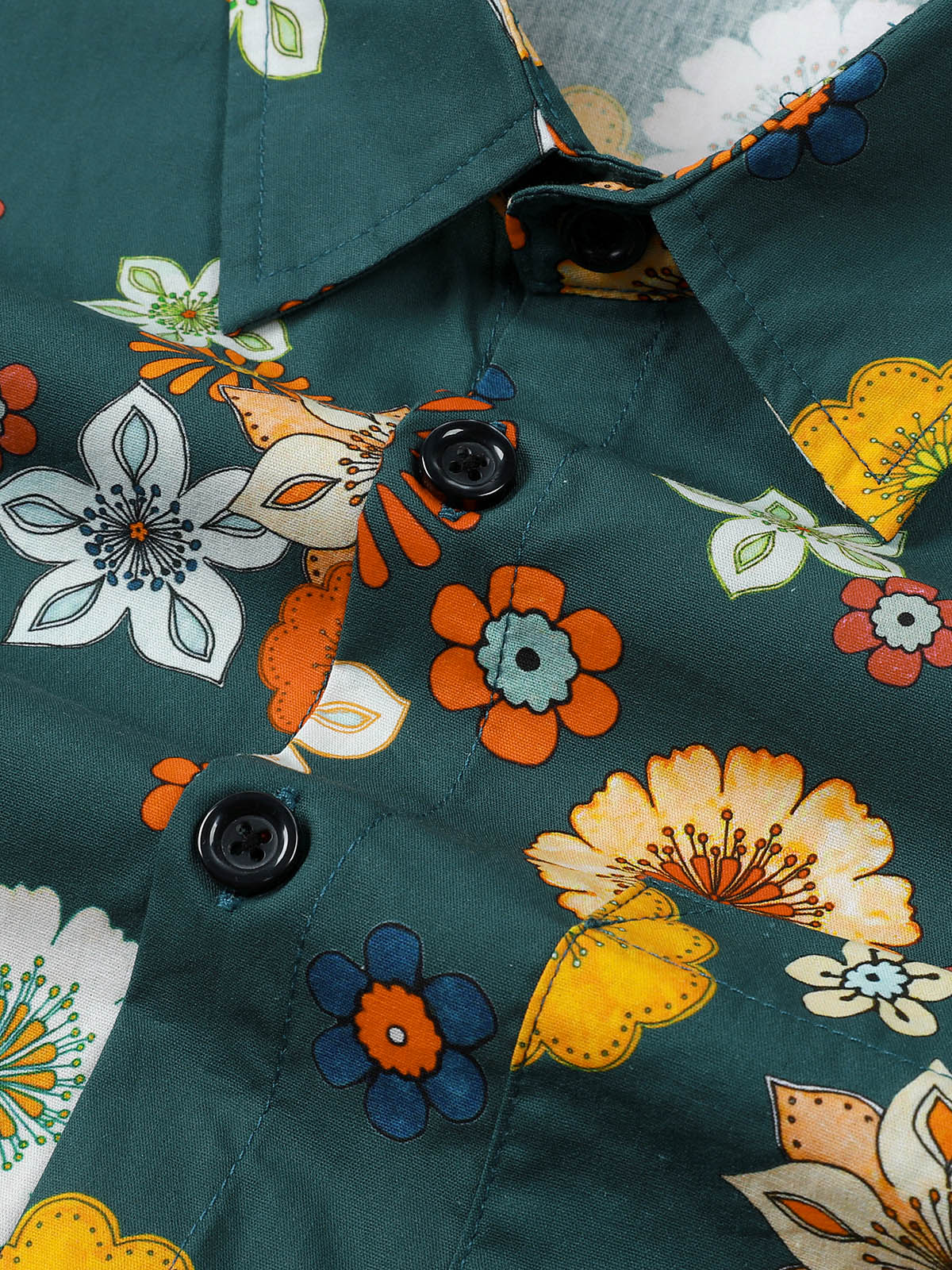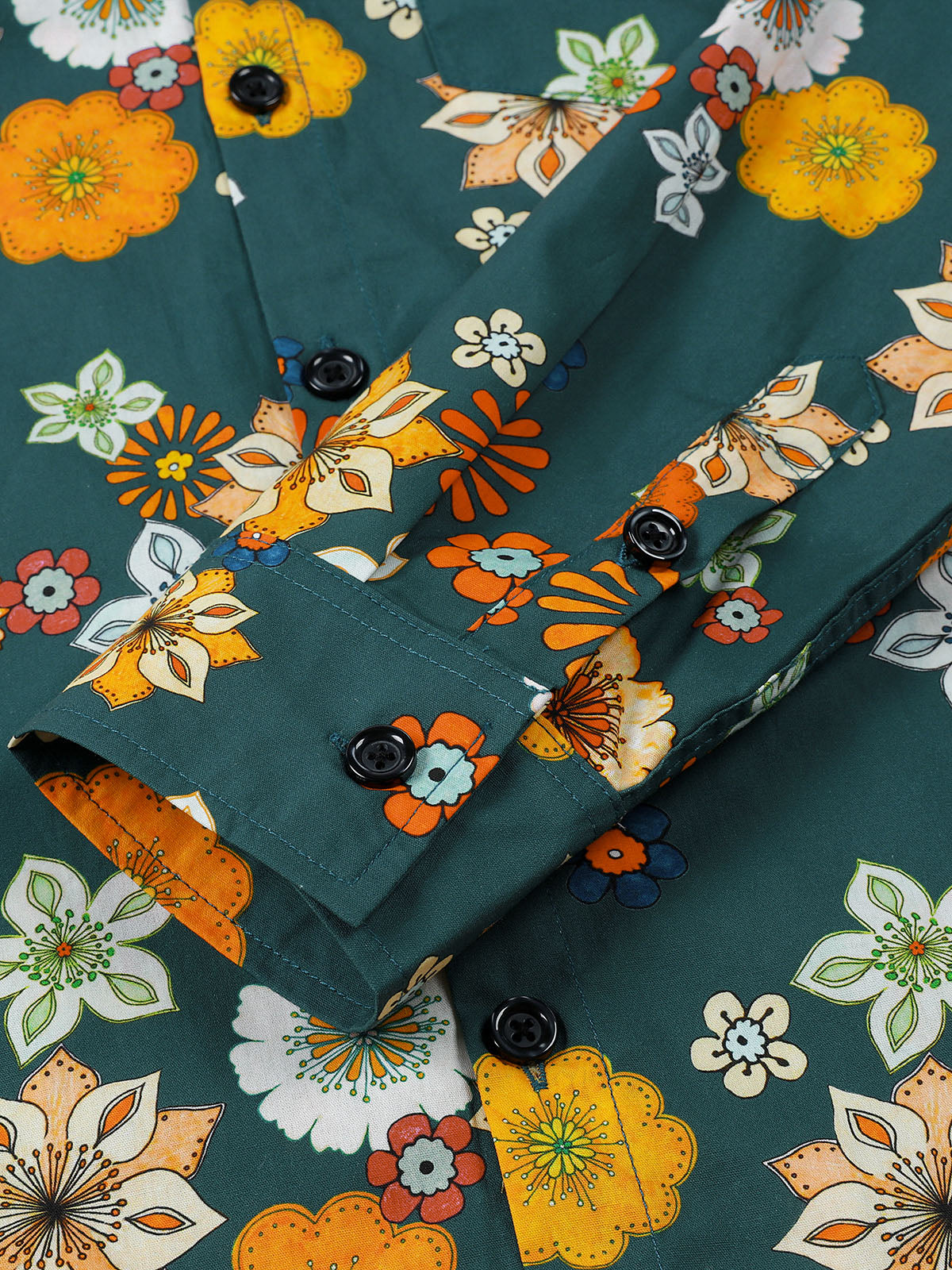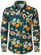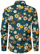 Men's Floral Print Green Casual Long Sleeve Shirt