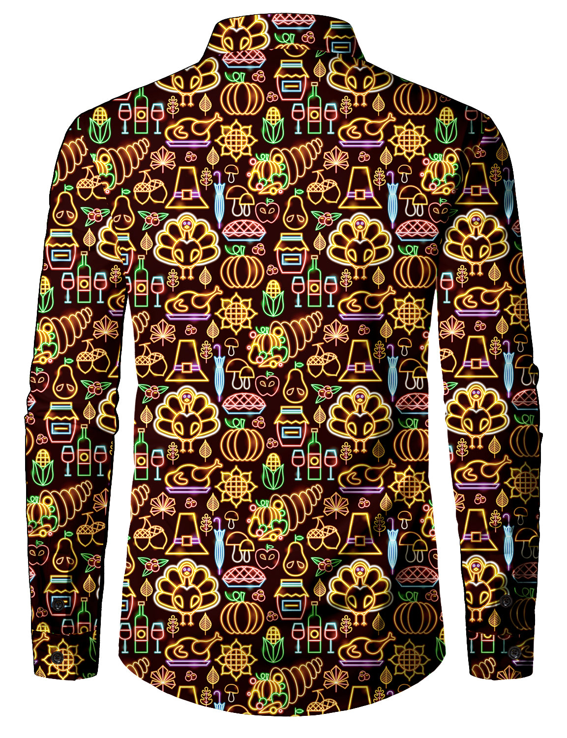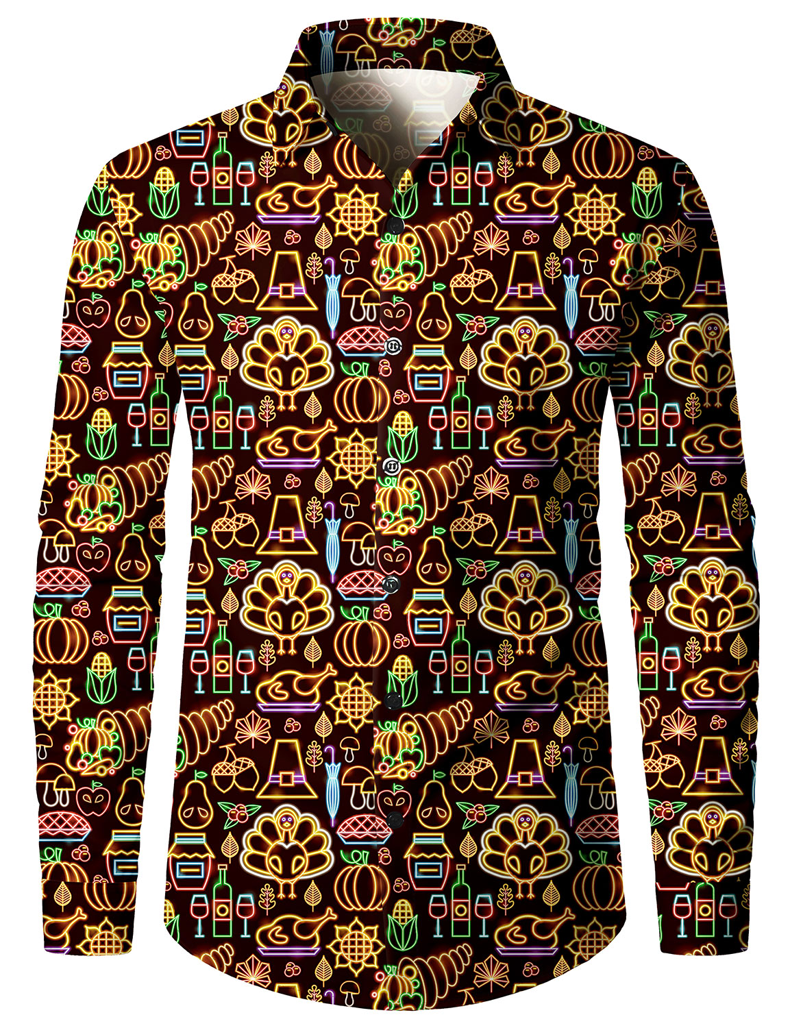 Men's Funny Thanksgiving Print Holiday Long Sleeve Shirt