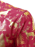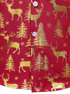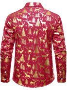 Men's Golden Christmas Reindeer Festive Print Red Long Sleeve Shirt
