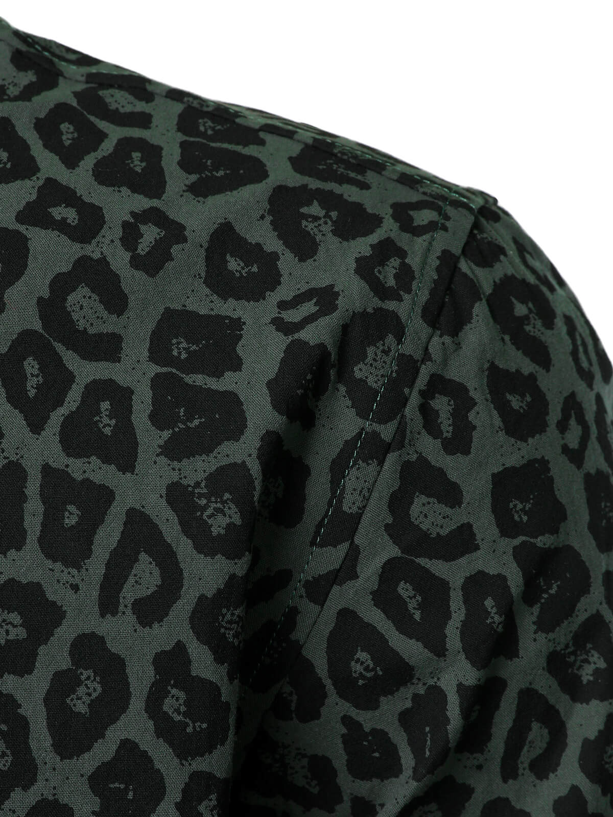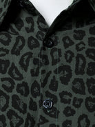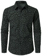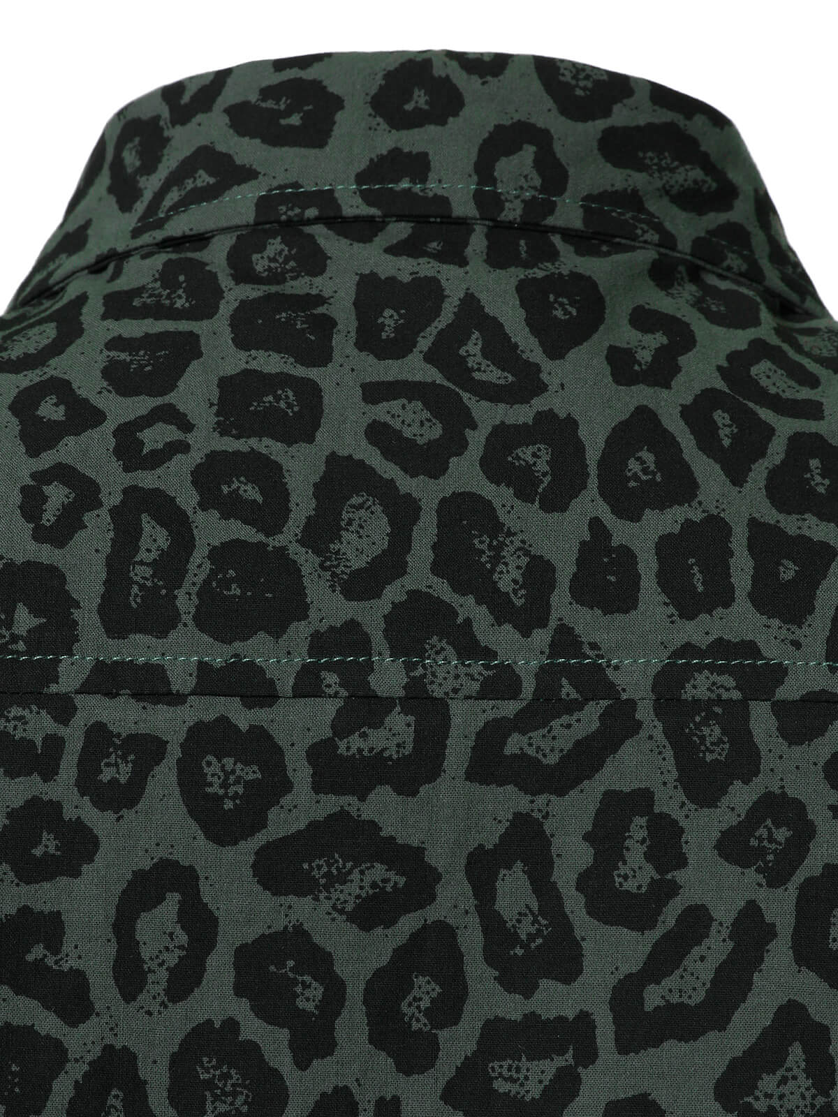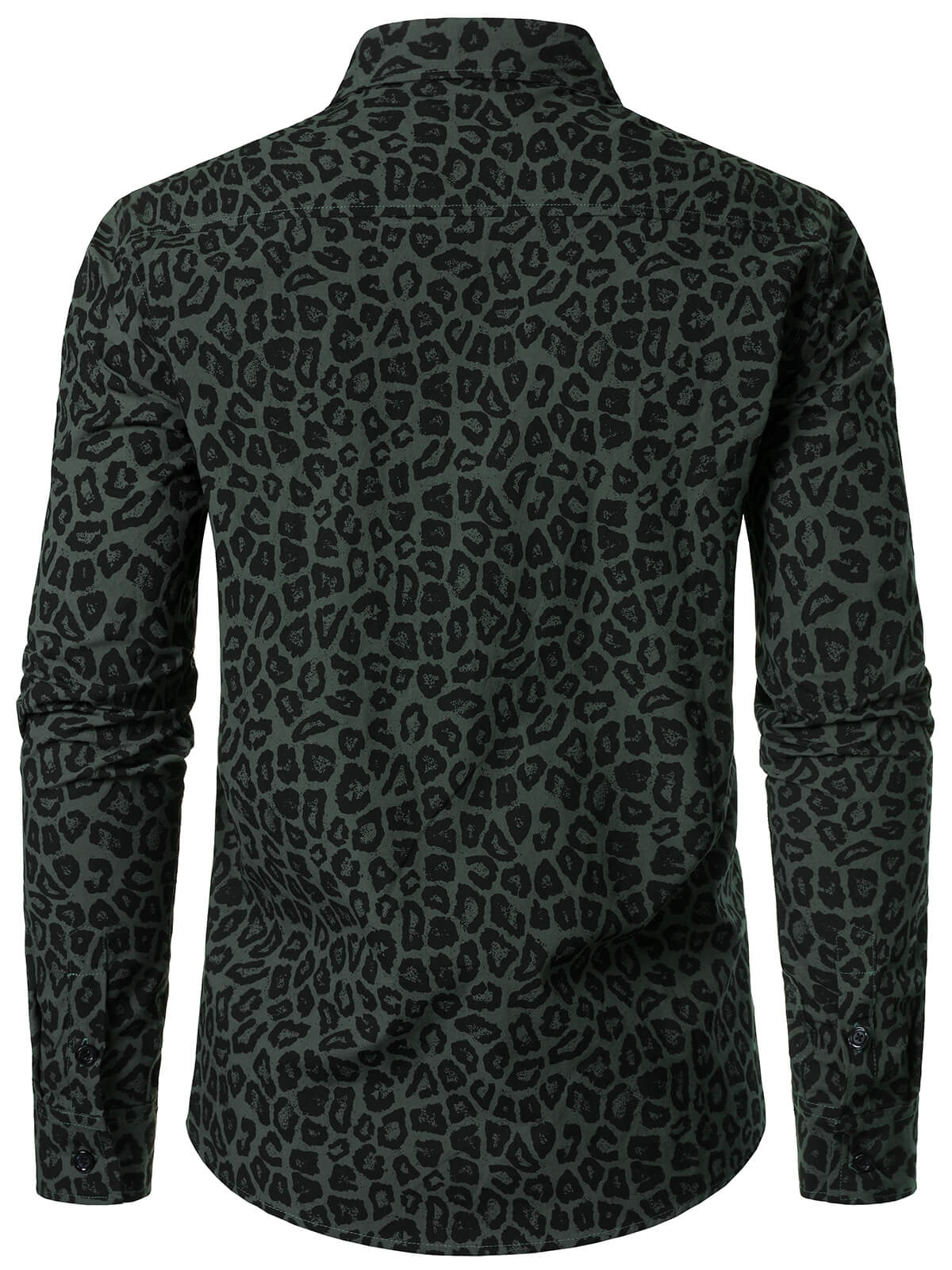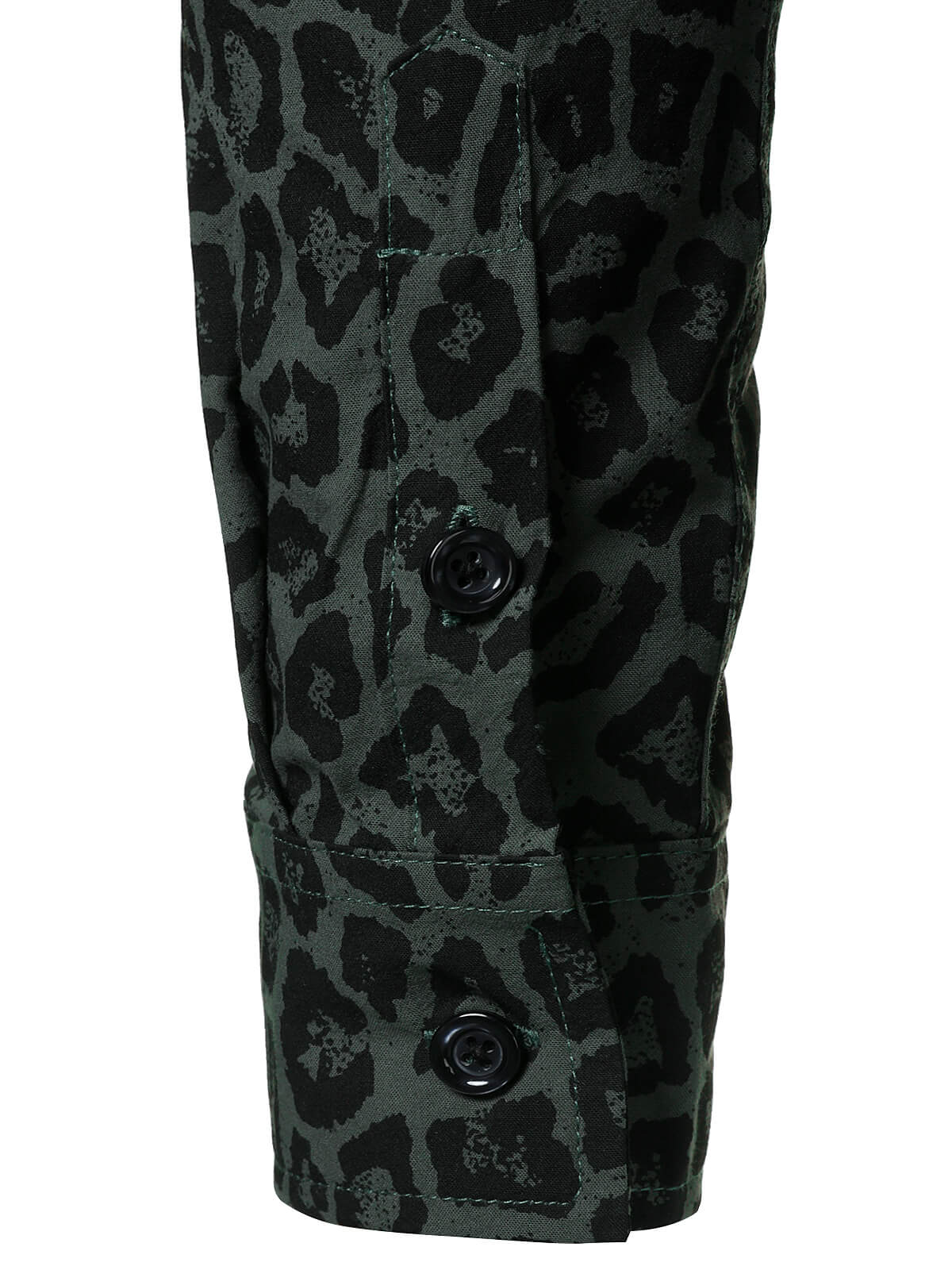 Men's Green Leopard Cotton Long Sleeve Shirt