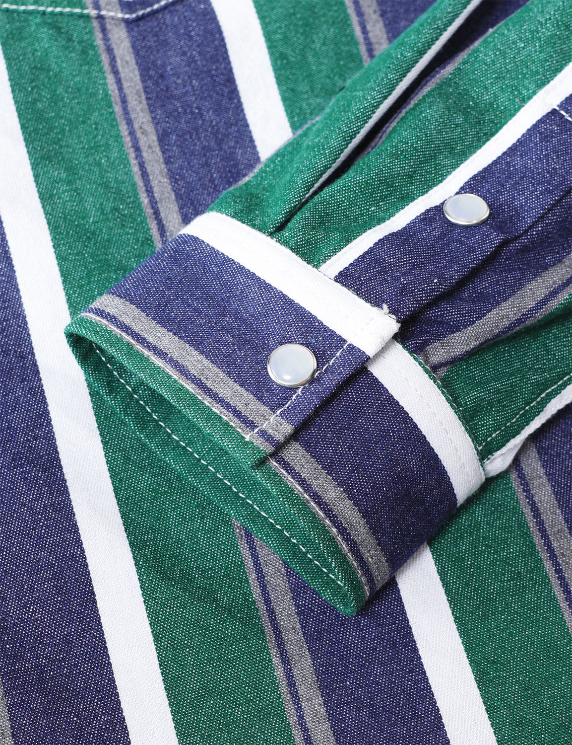 Men's Green Striped Western Pearl Snap Long Sleeve Denim Shirt