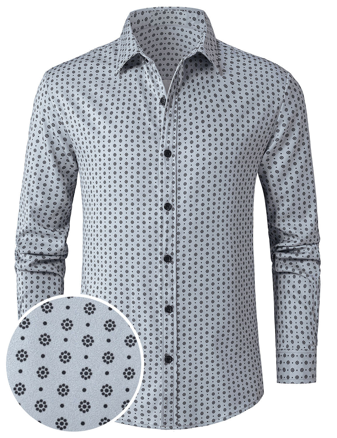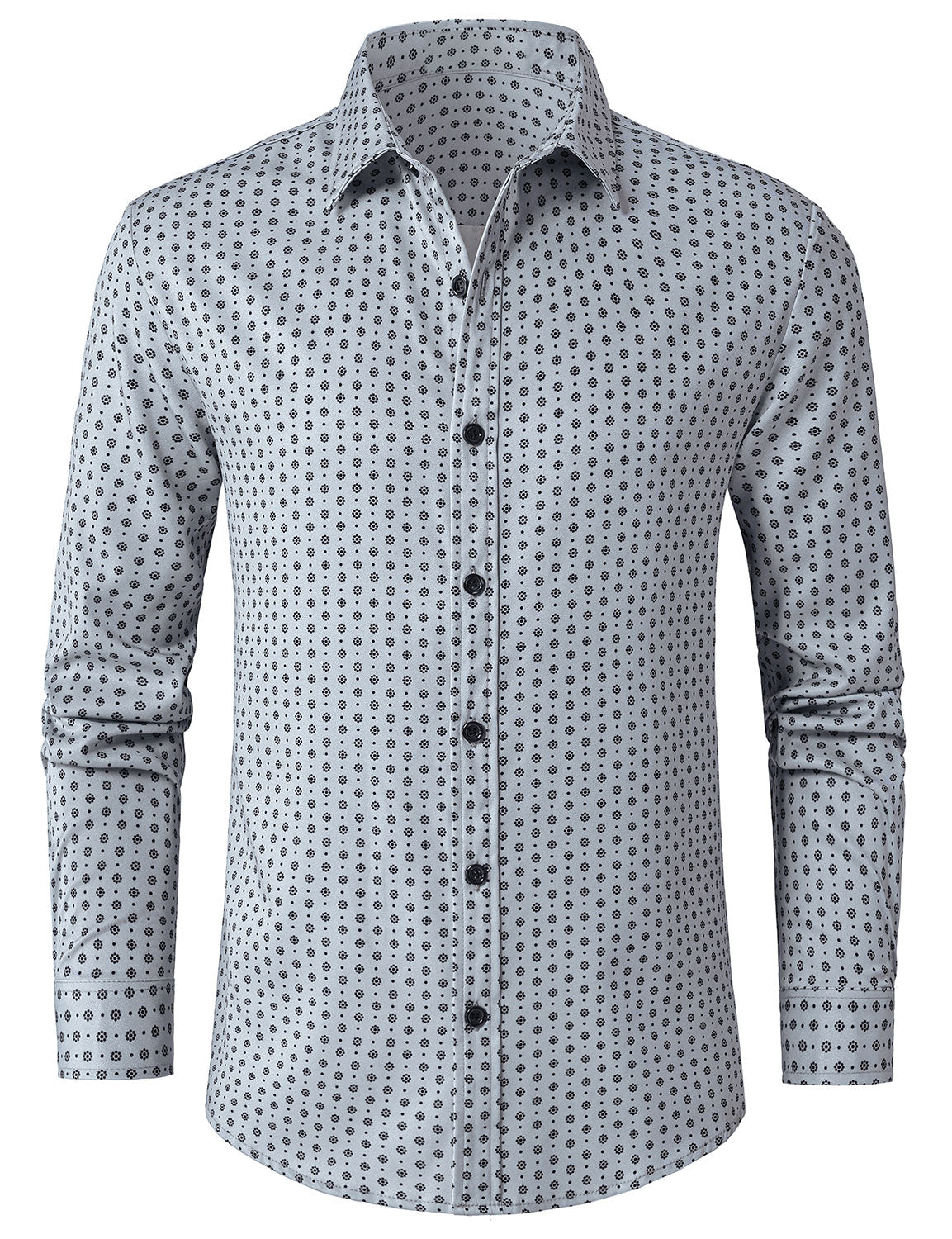 Men's Grey Retro Print Long Sleeve Shirt