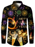 Men's Happy New Year Fireworks Print Long Sleeve Holiday Shirt
