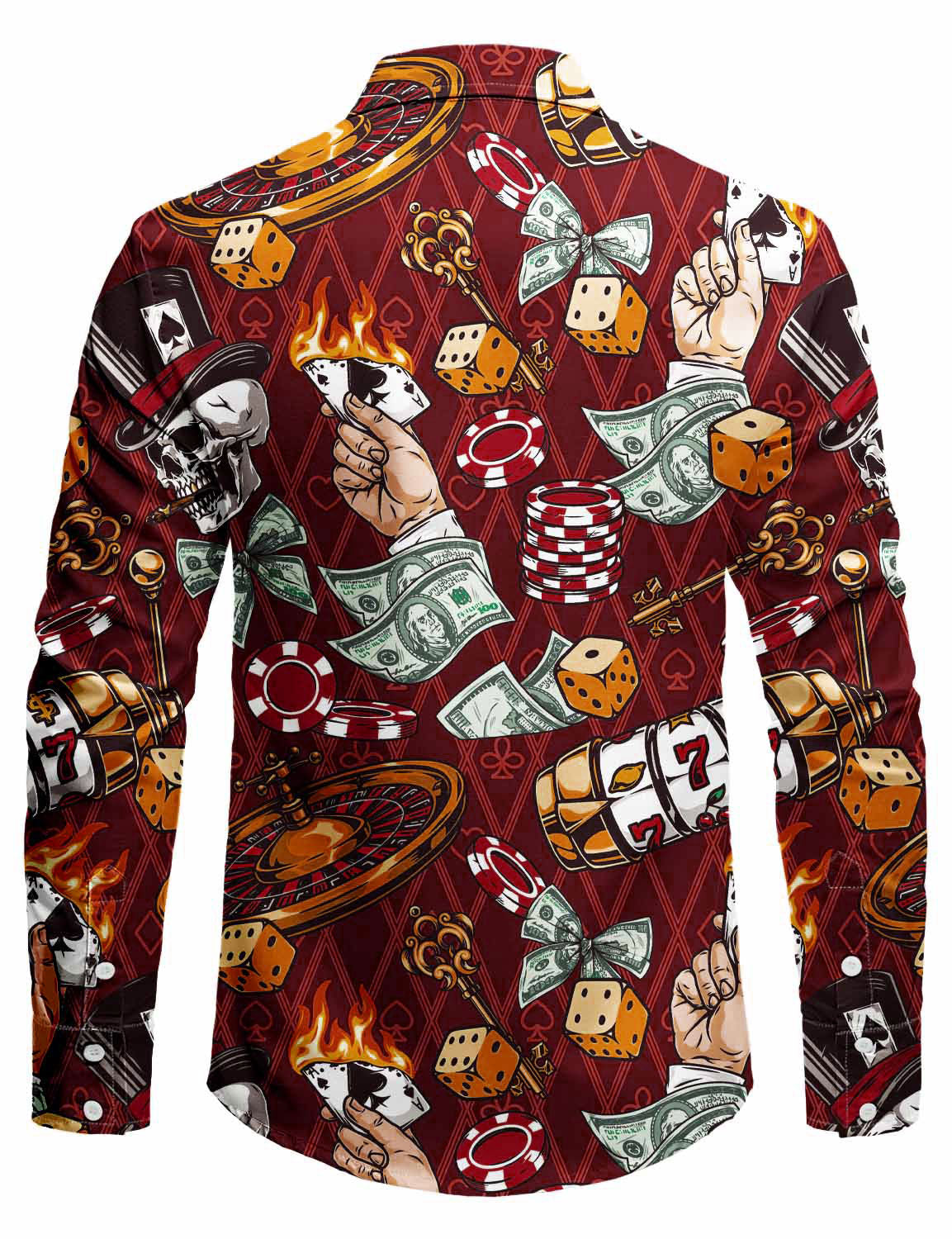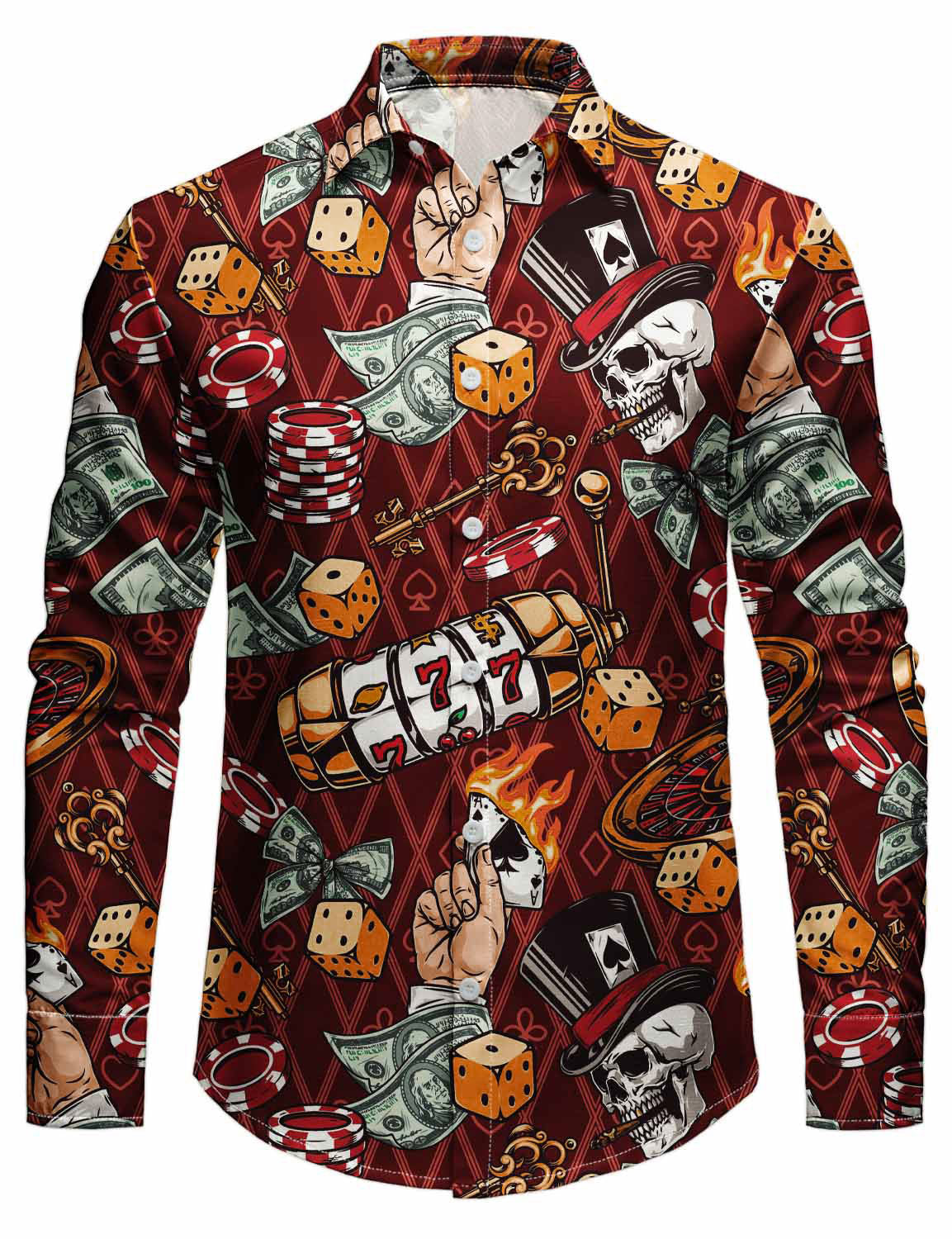 Men's Holiday Casual Cool Poker Dice Skull Long Sleeve Shirt