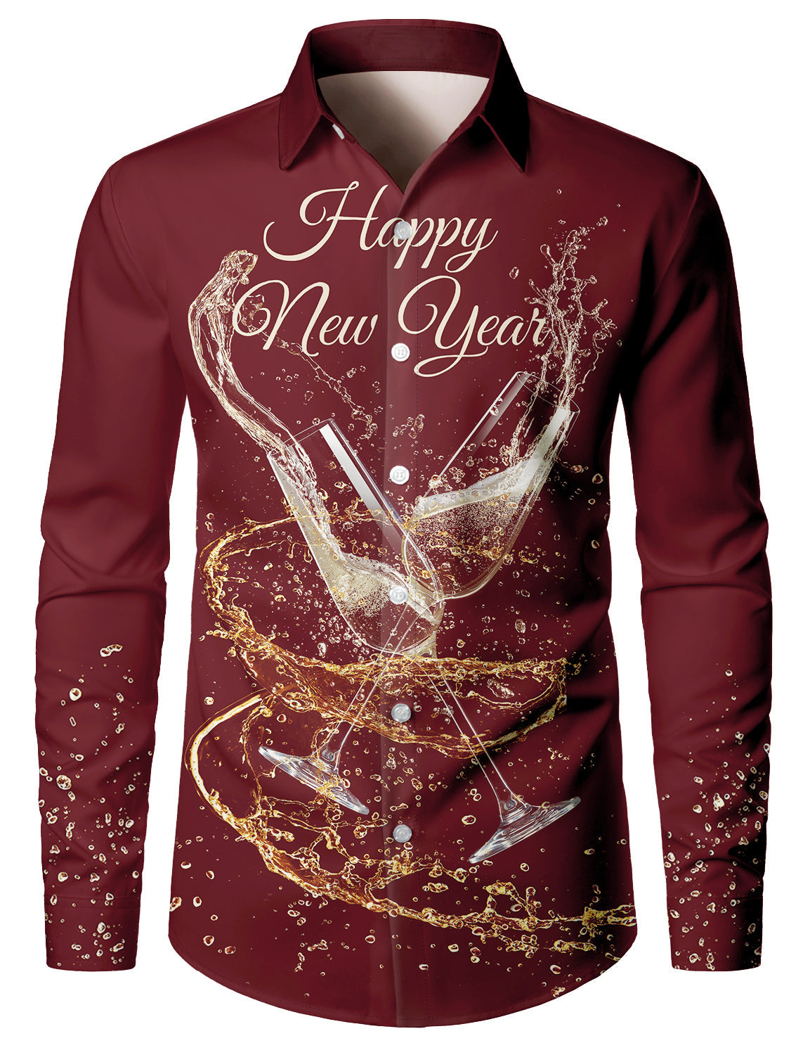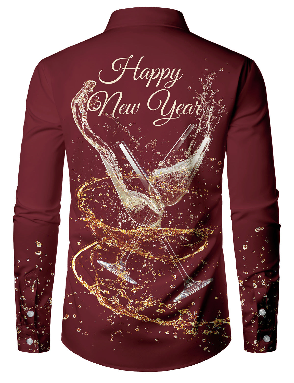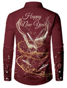 Men's Holiday Happy New Year Funny Red Long Sleeve Shirt