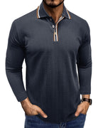 Men's Jacquard Casual Polo Long Sleeve Shirt