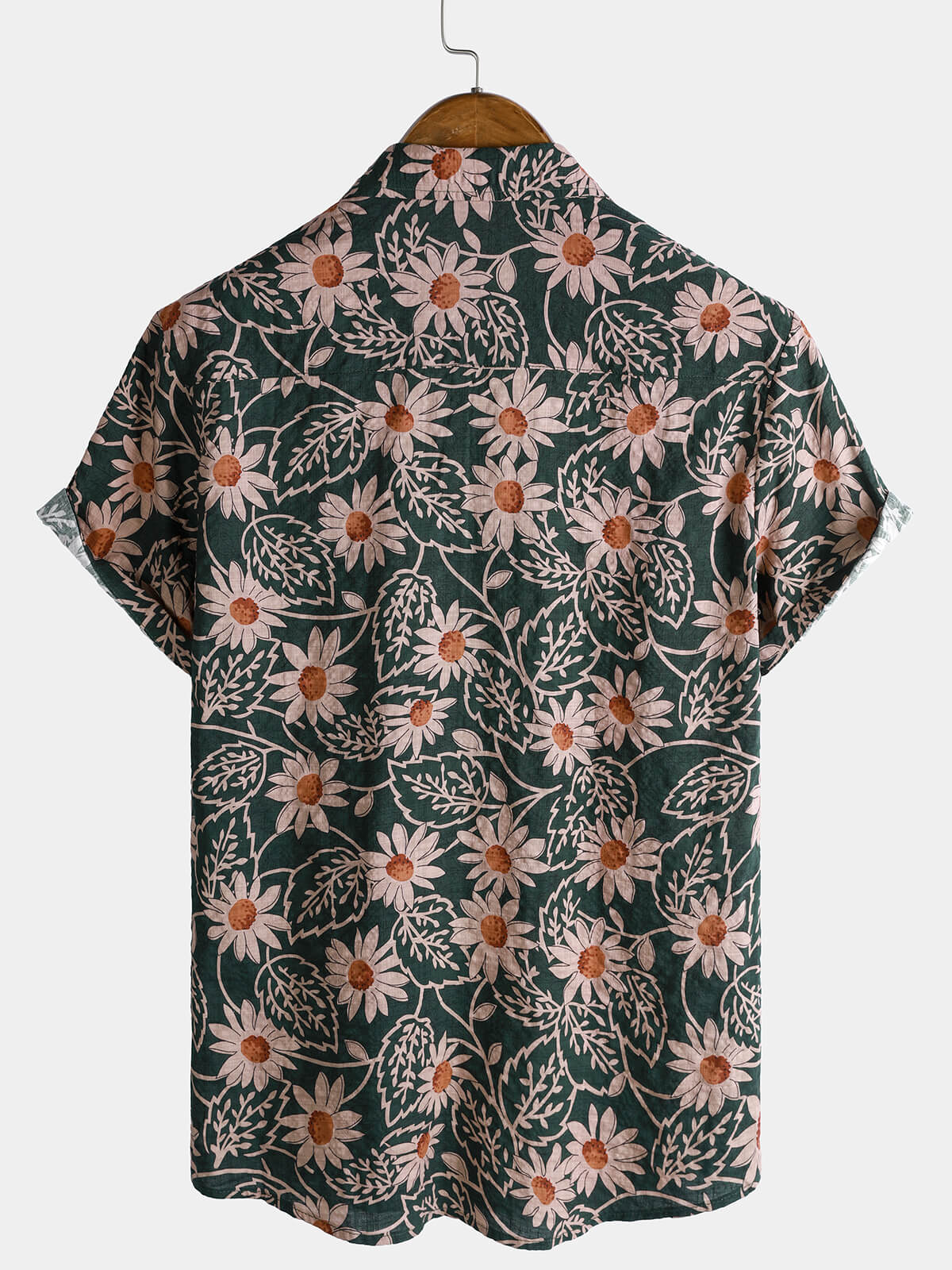 Men's Retro Daisy Print Short Sleeve Hawaiian Shirt