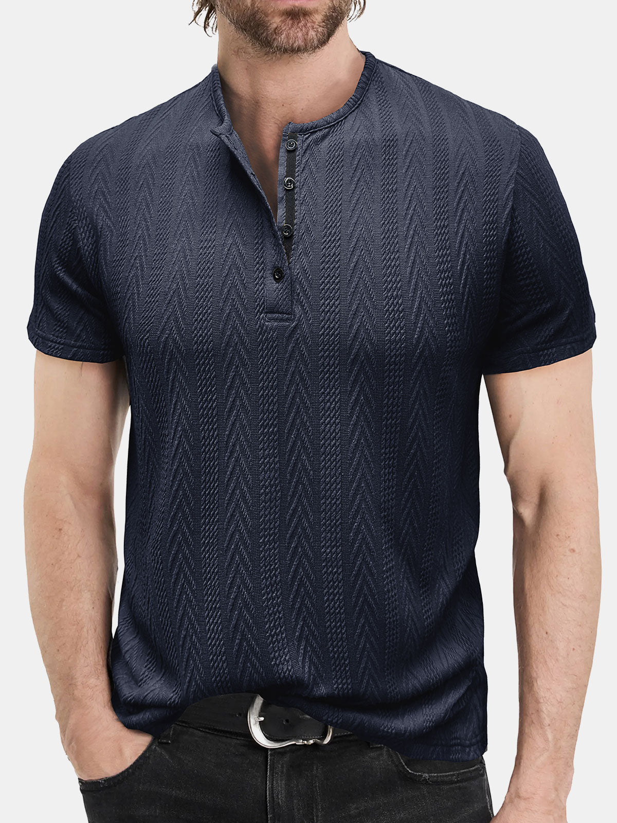Men's Solid Color Henley Short Sleeve Summer T-Shirt