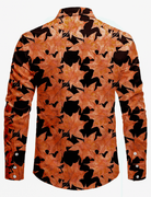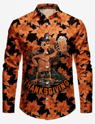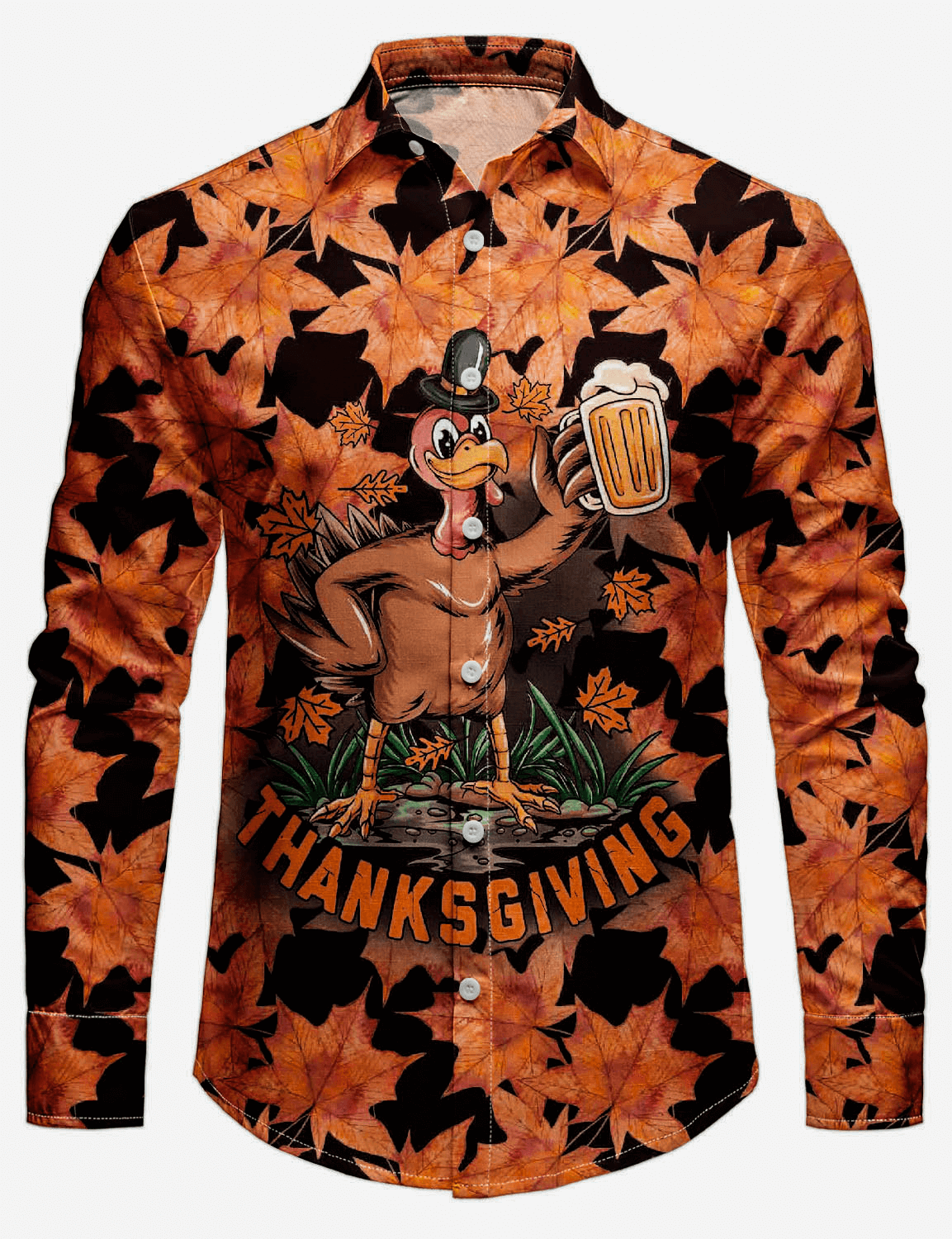 Men's Thanksgiving Beer Turkey Maple Leaf Print Black Long Sleeve Shirt