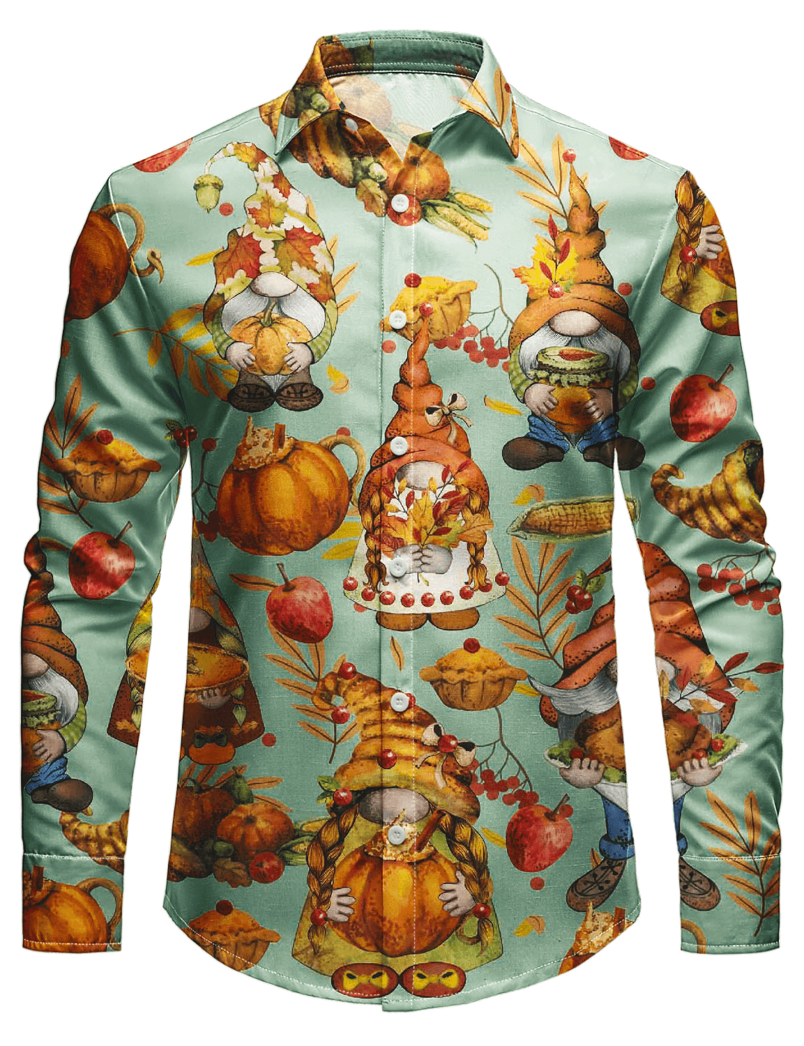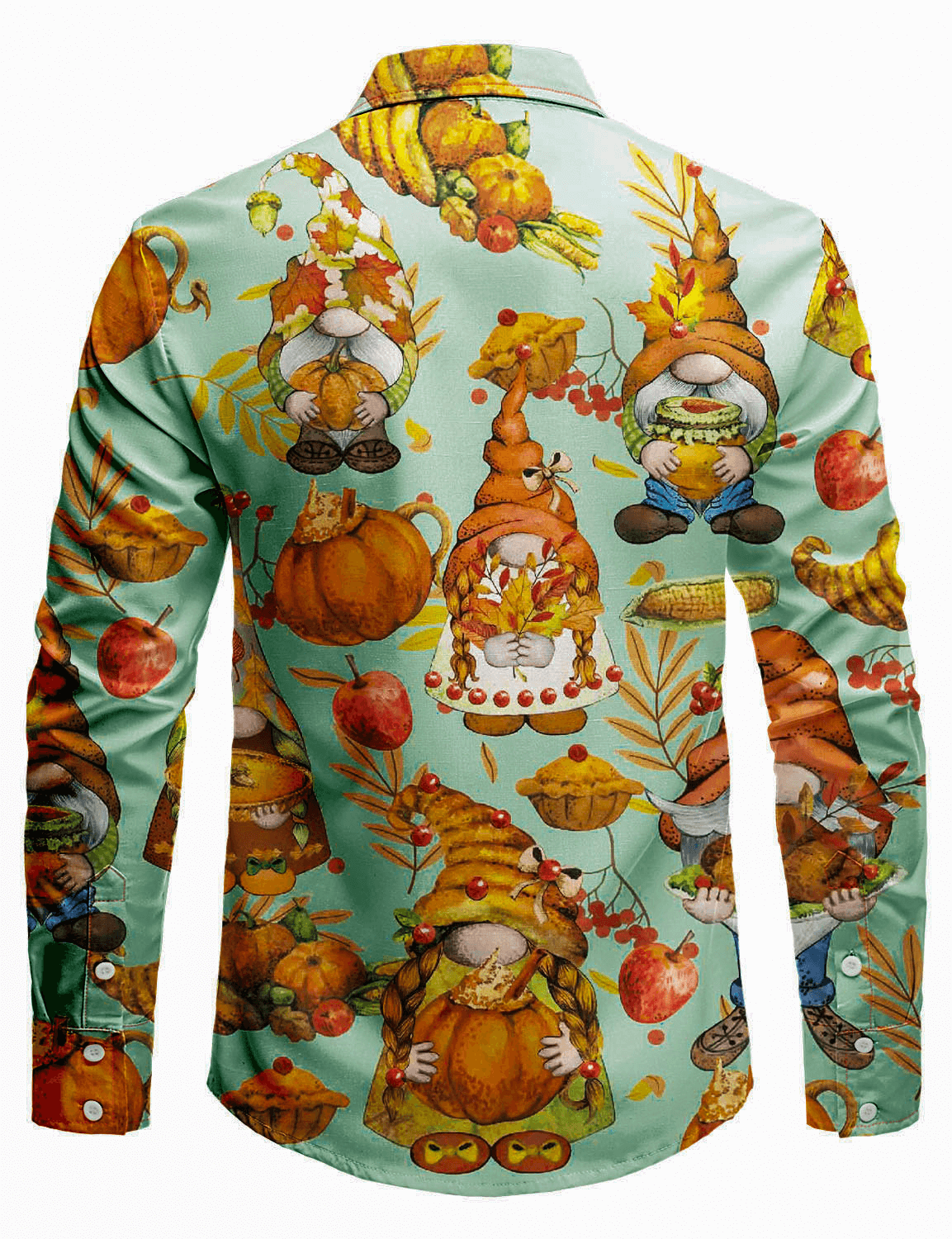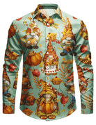 Men's Thanksgiving Festive Print Holiday Button Up Long Sleeve Shirt