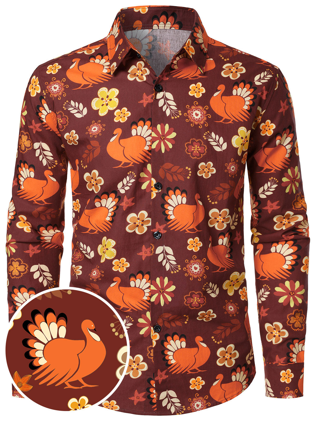 Men's Thanksgiving Turkey Funny Cotton Long Sleeve Shirt
