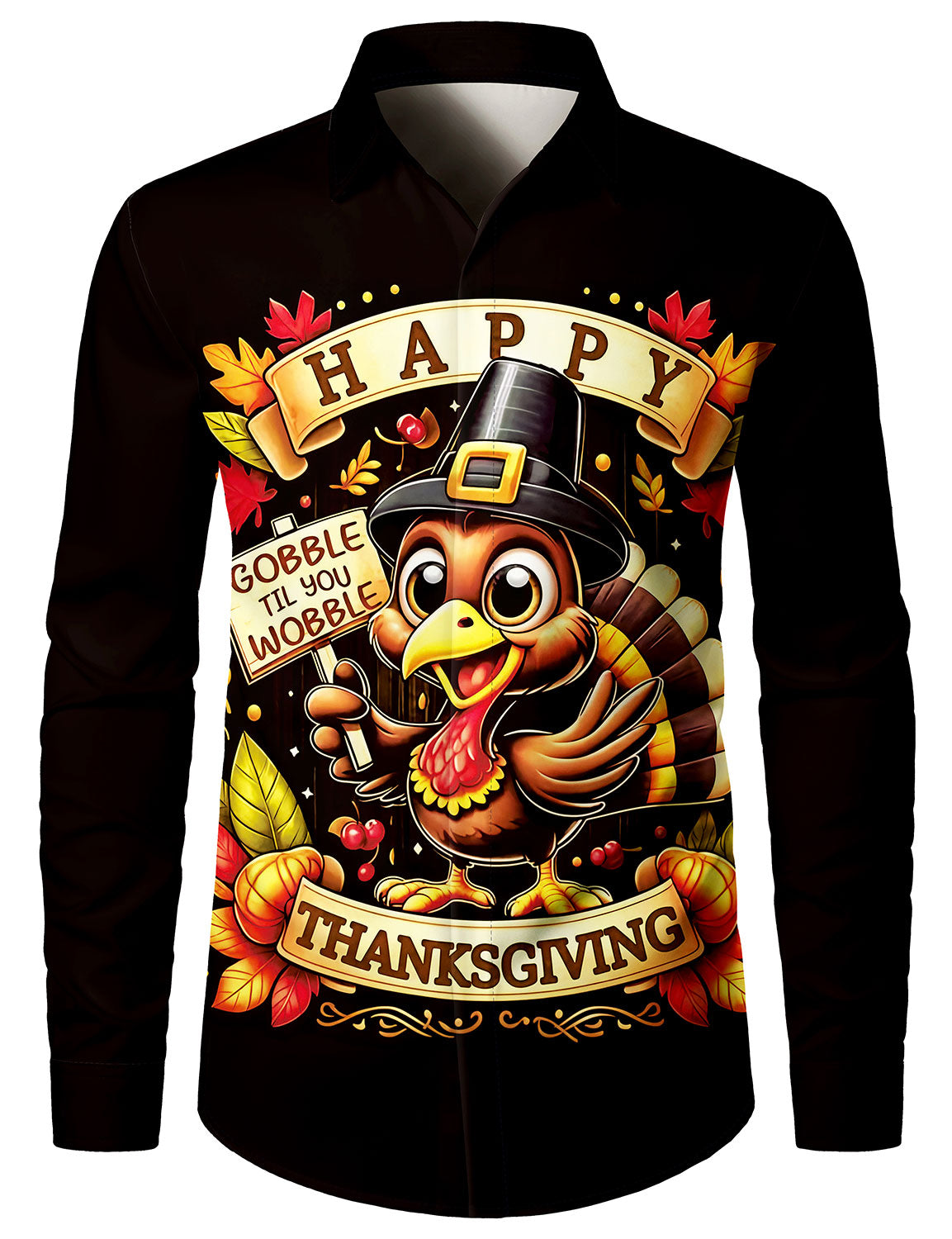 Men's Thanksgiving Turkey "Gobble" Long Sleeve Shirt