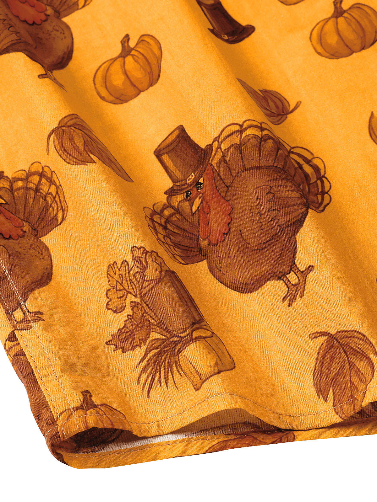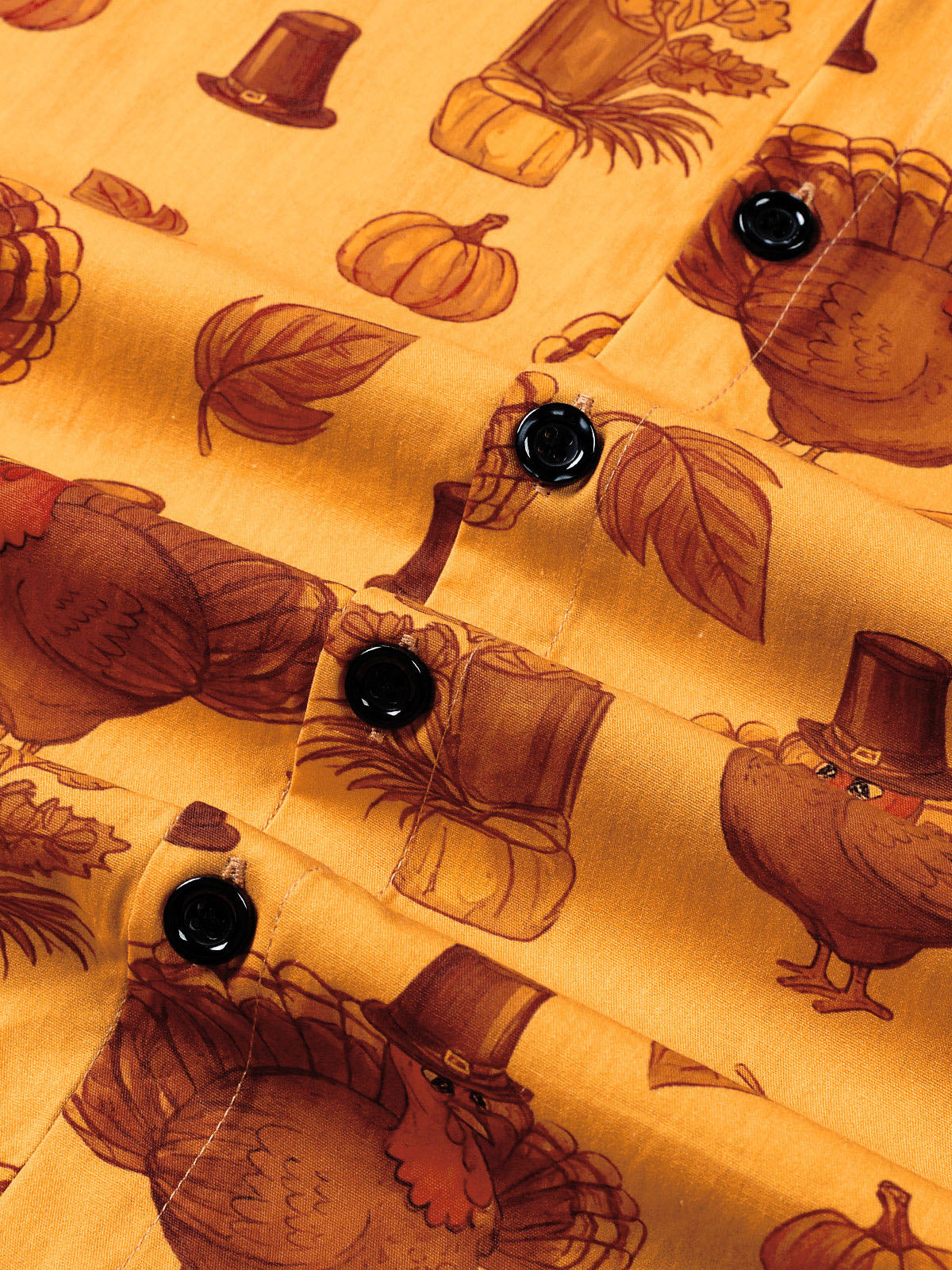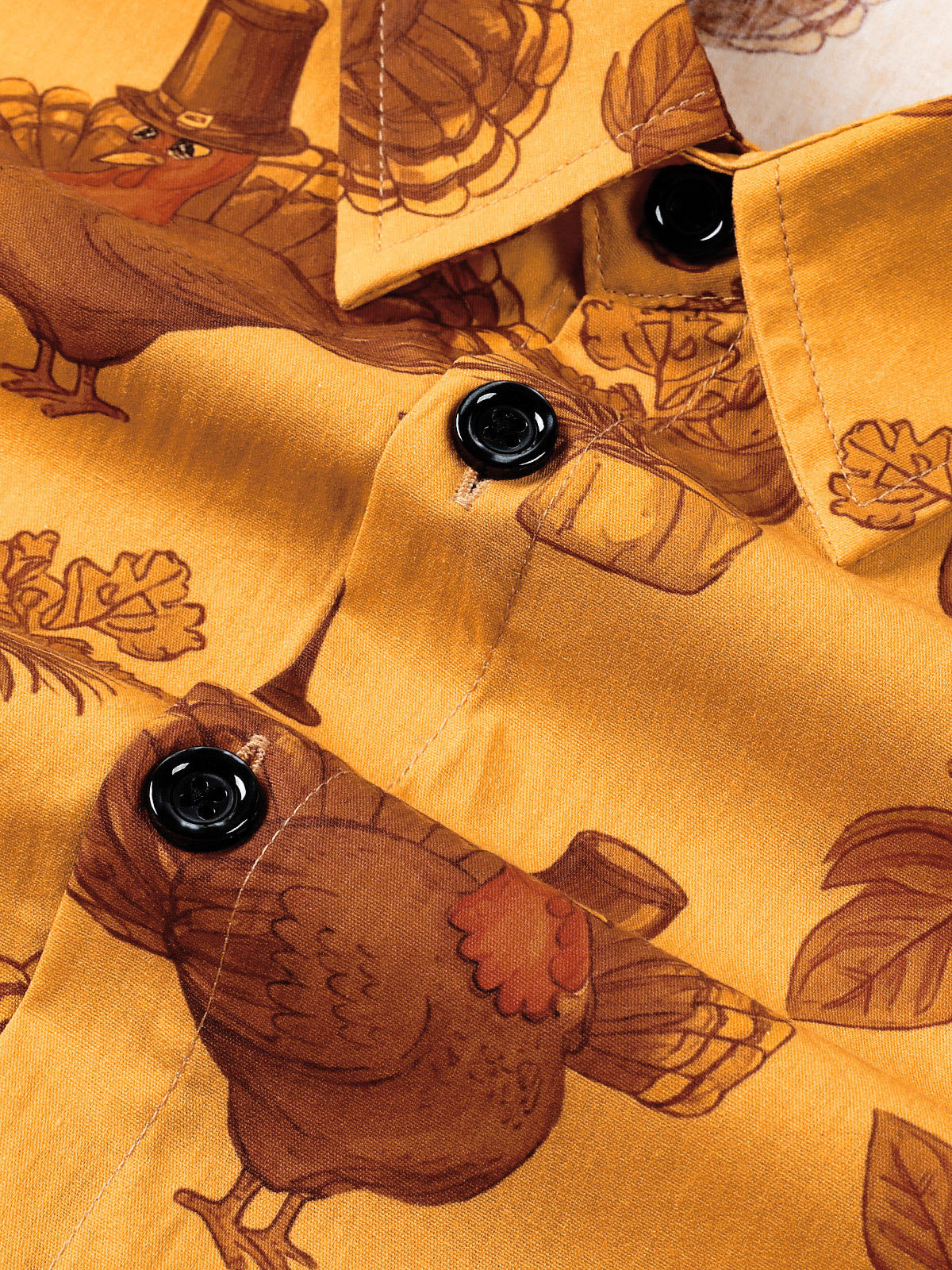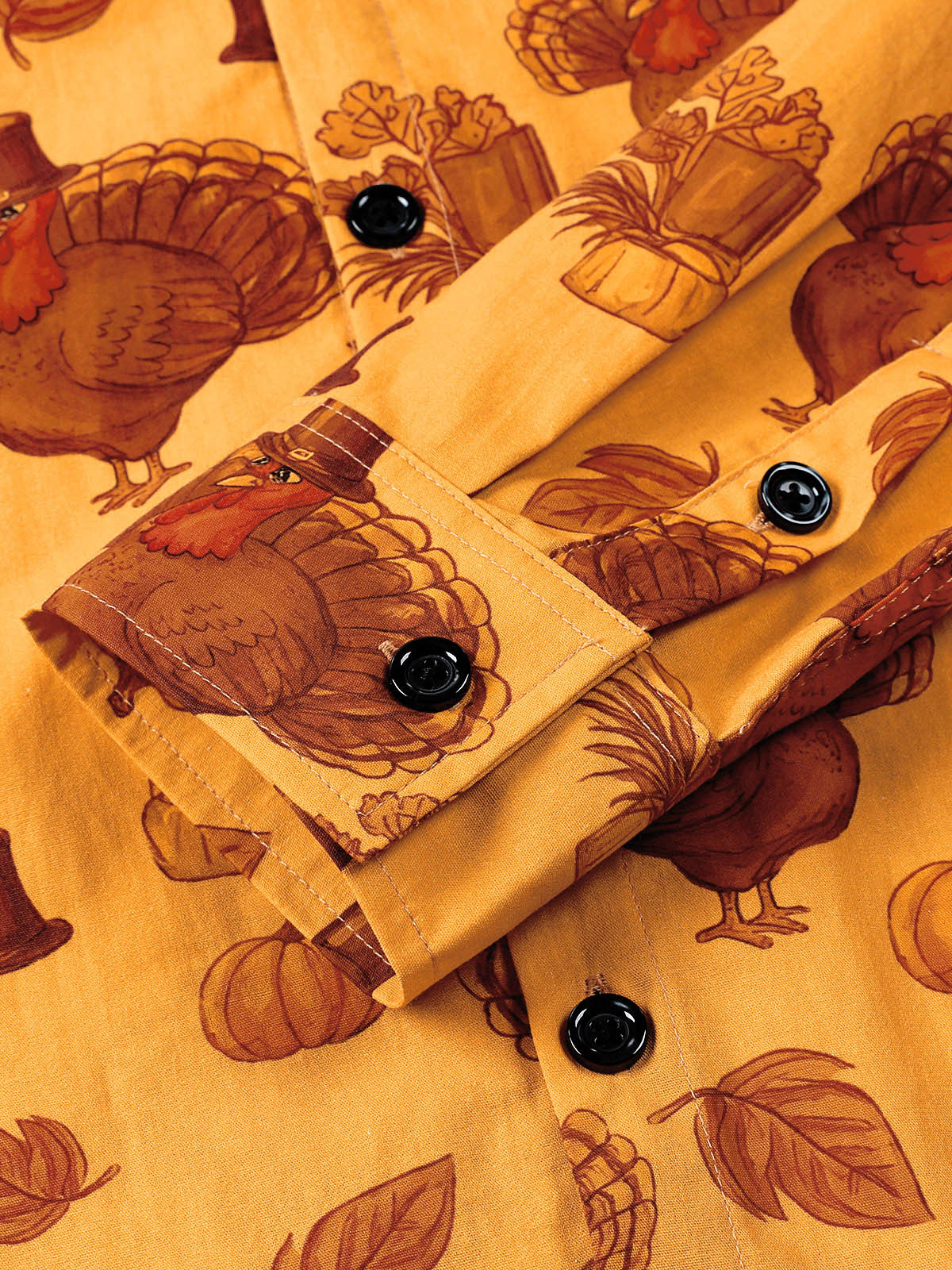Men's Thanksgiving Turkey Orange Cotton Long Sleeve Shirt