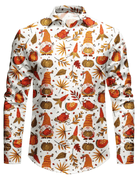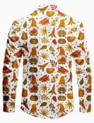 Men's Thanksgiving Turkey Pumpkin Maple Leaf and Gnome Print Long Sleeve Shirt