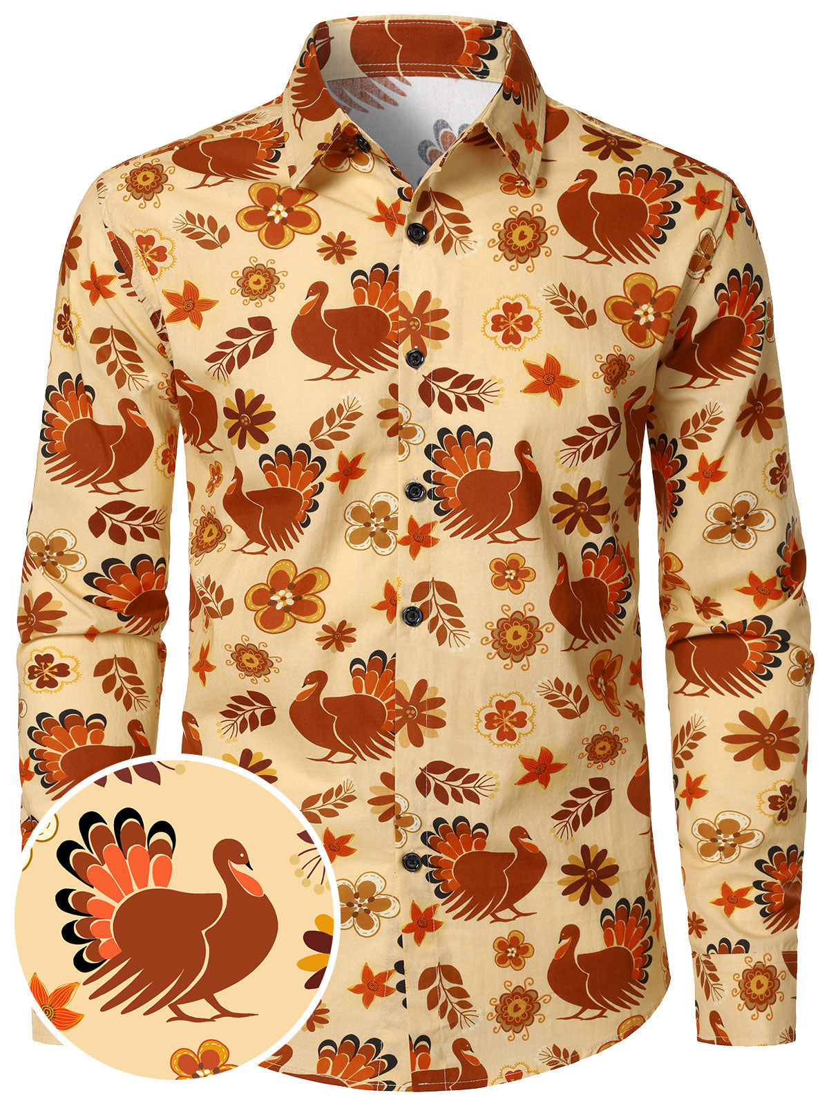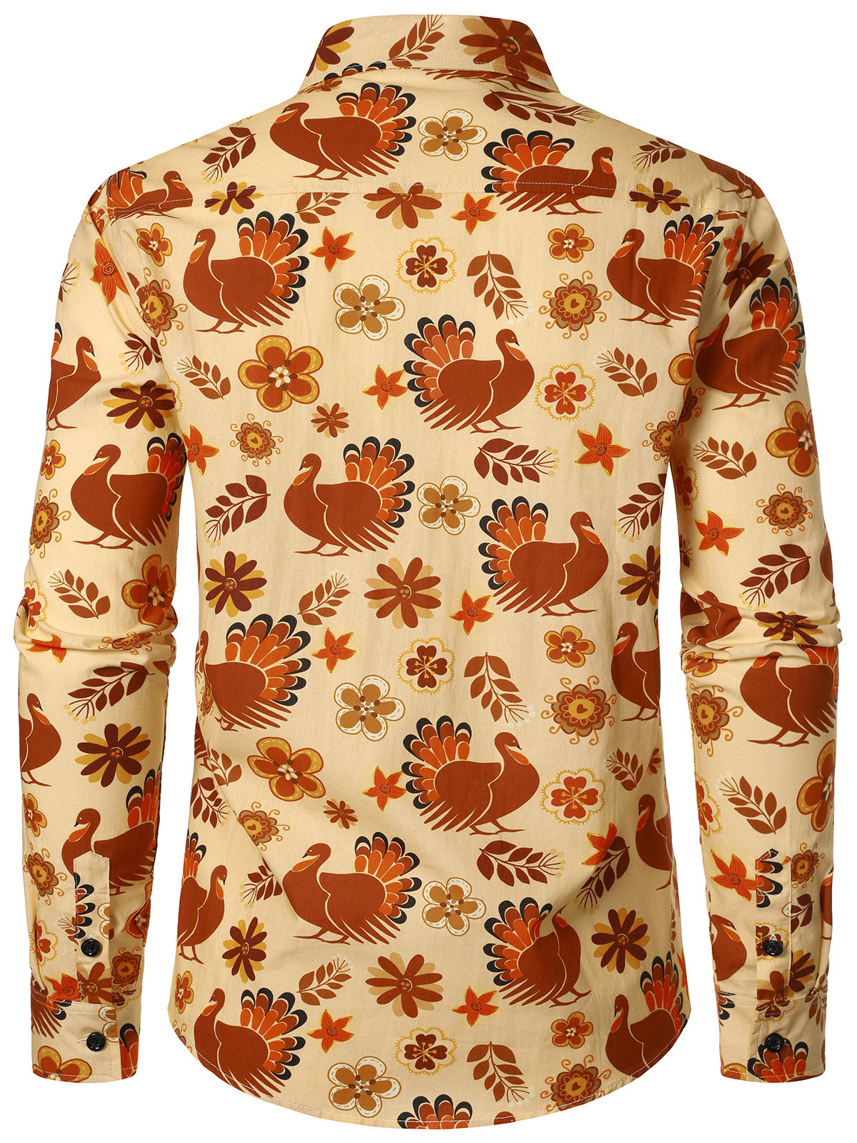 Men's Thanksgiving Turkey Vintage Cotton Long Sleeve Shirt