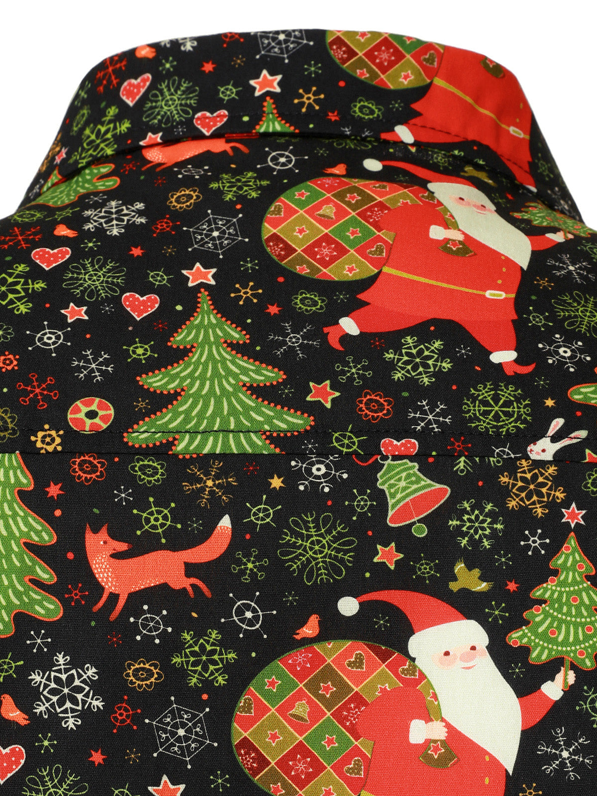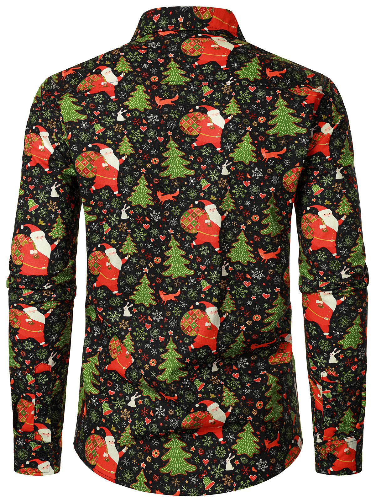 Men's Vintage Santa Claus Christmas Holiday Cotton Long Sleeve Shirt