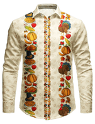 Men's Vintage Turkey and Pumpkin Print Thanksgiving Long Sleeve Shirt