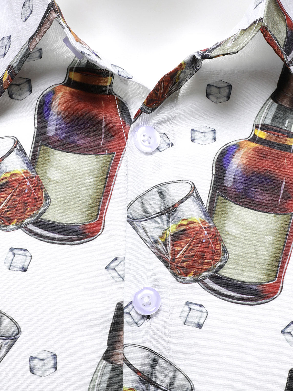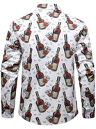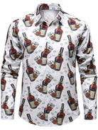 Men's Whiskey & Ice Cube Print Casual Long Sleeve Cotton Holiday Party Shirt