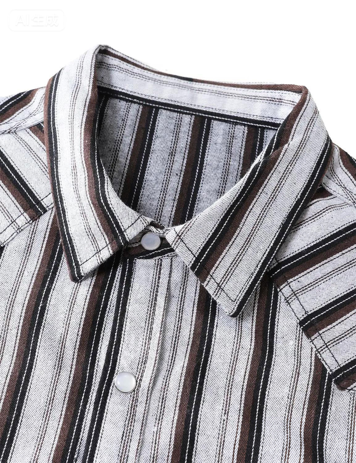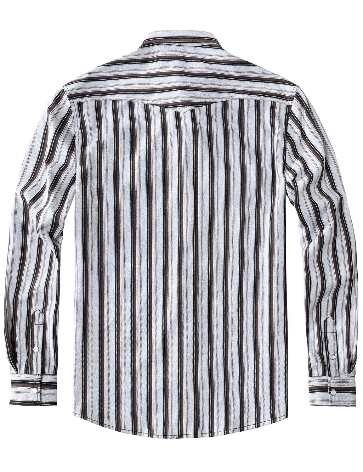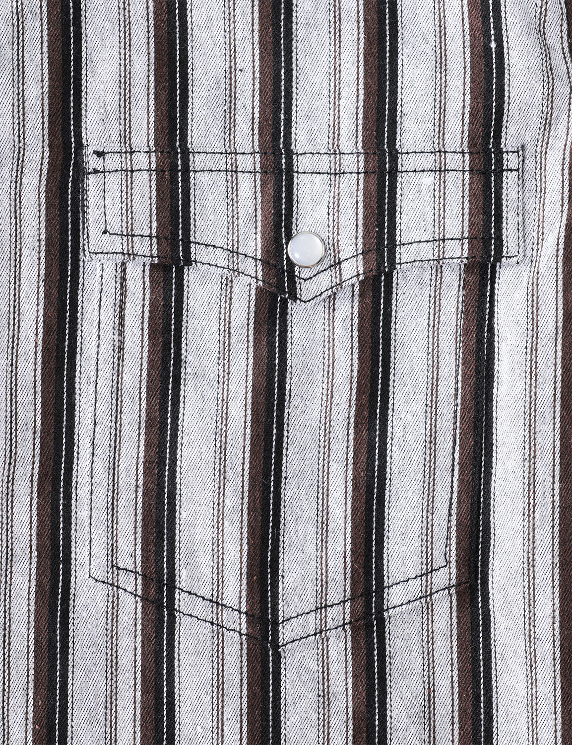 Men's White Striped Western Pearl Snap Casual Denim Shirt