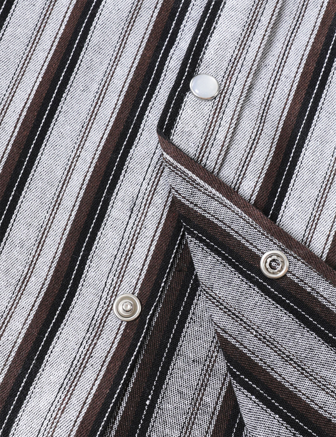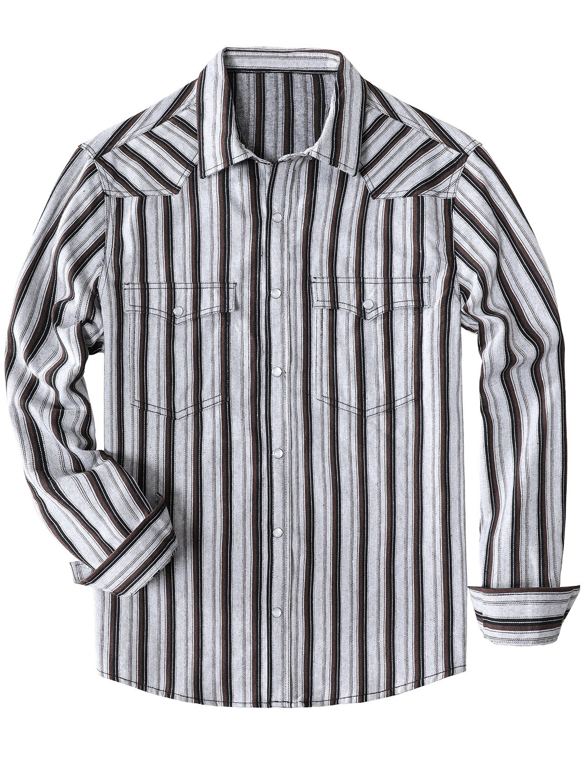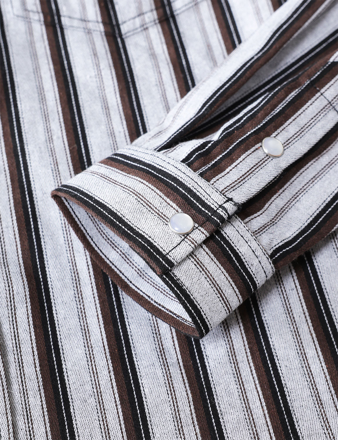 Men's White Striped Western Pearl Snap Casual Denim Shirt